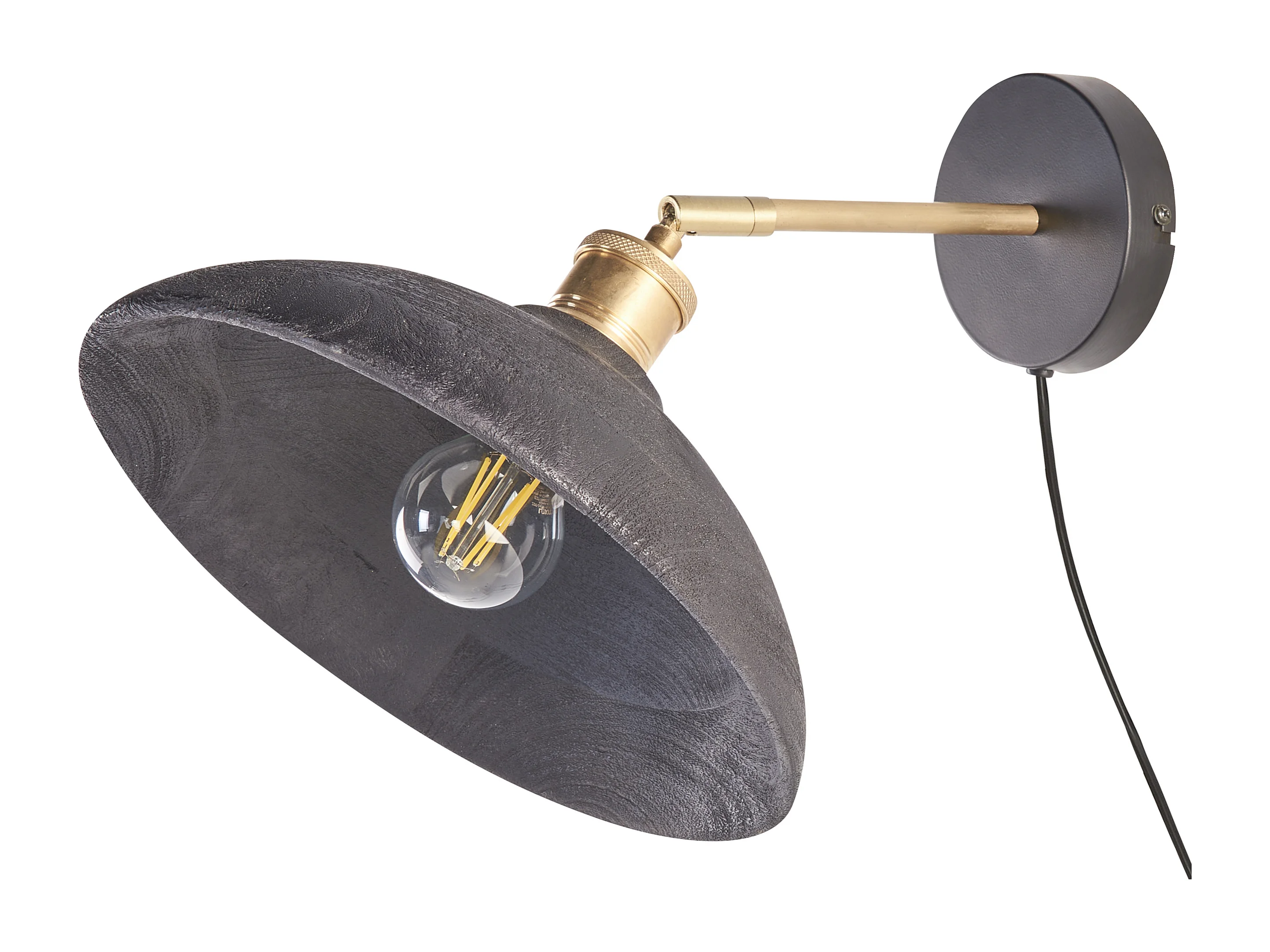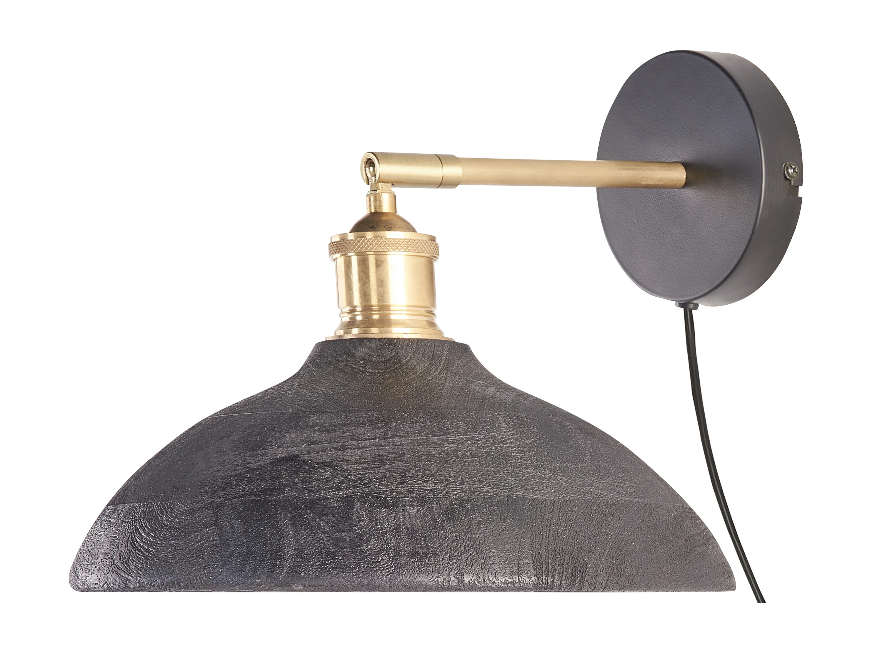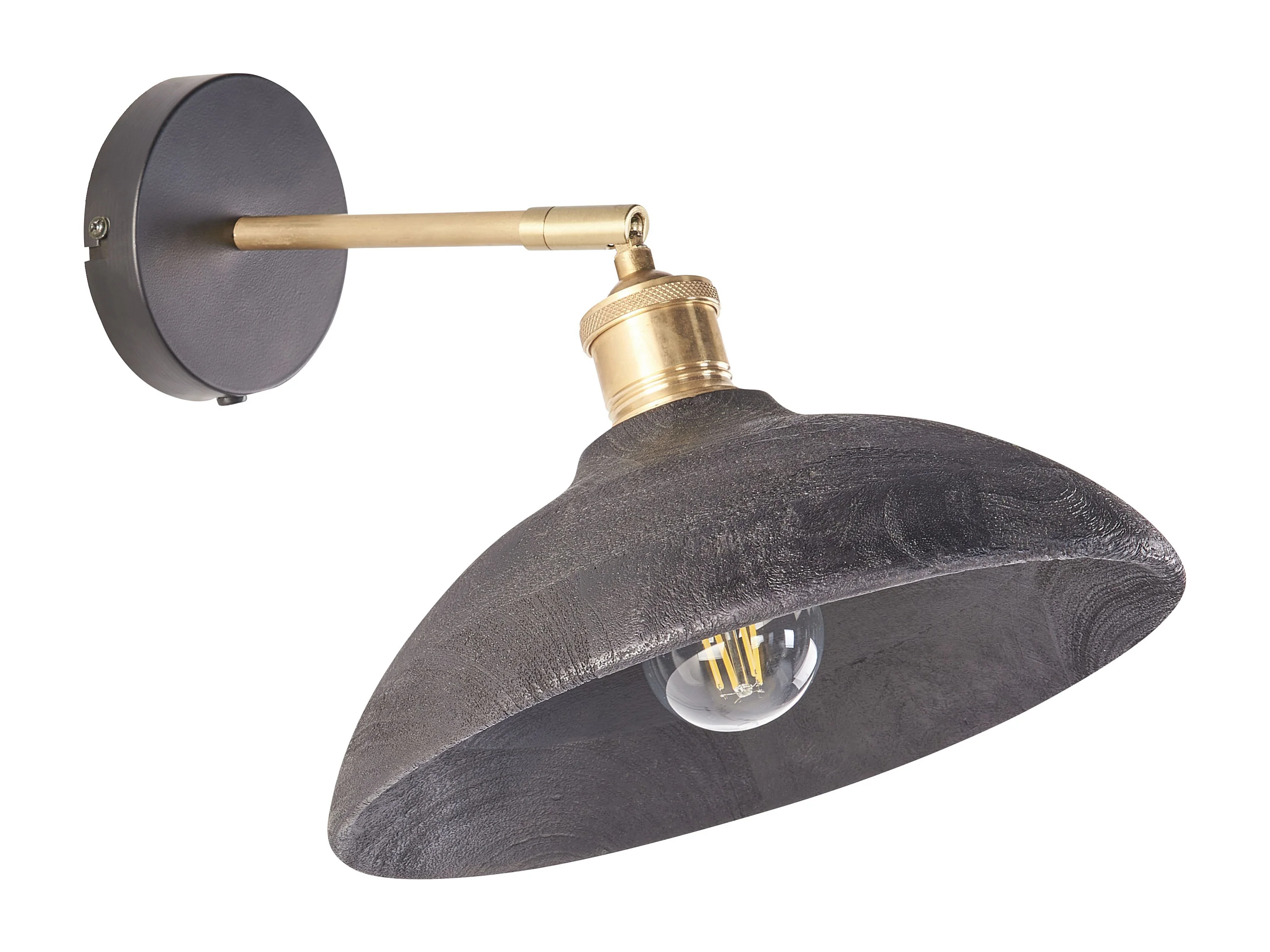 Wandlampe Mango-Holz schwarz / messing mit 1 Schirm Kegelform verstellbar Yerala