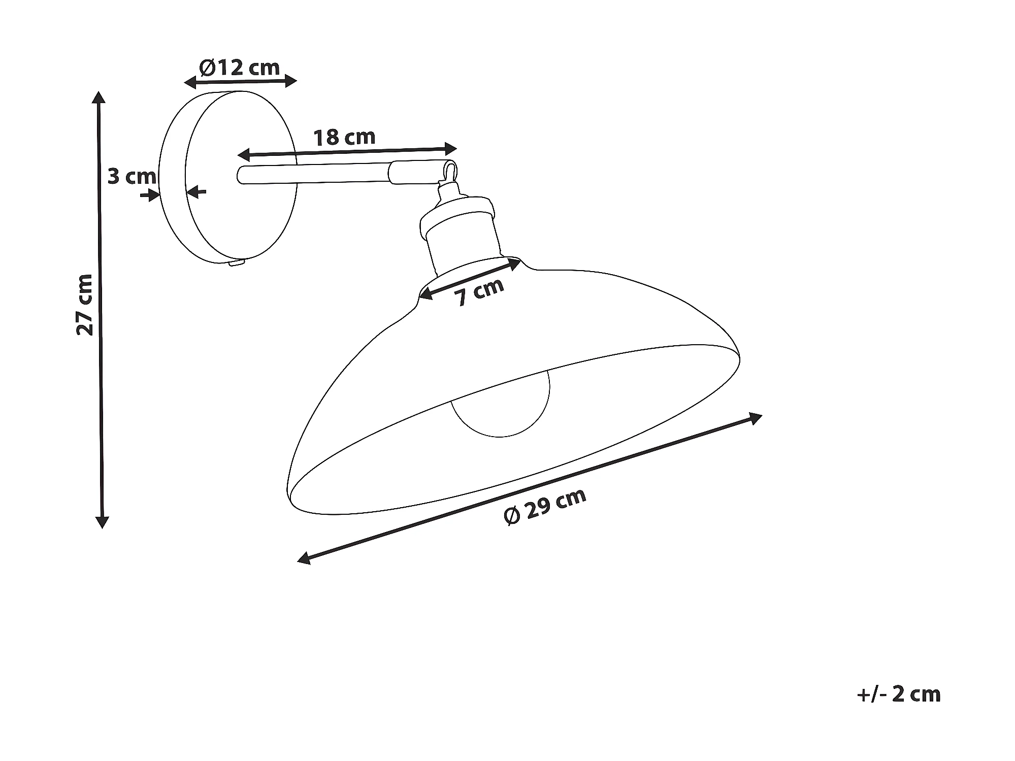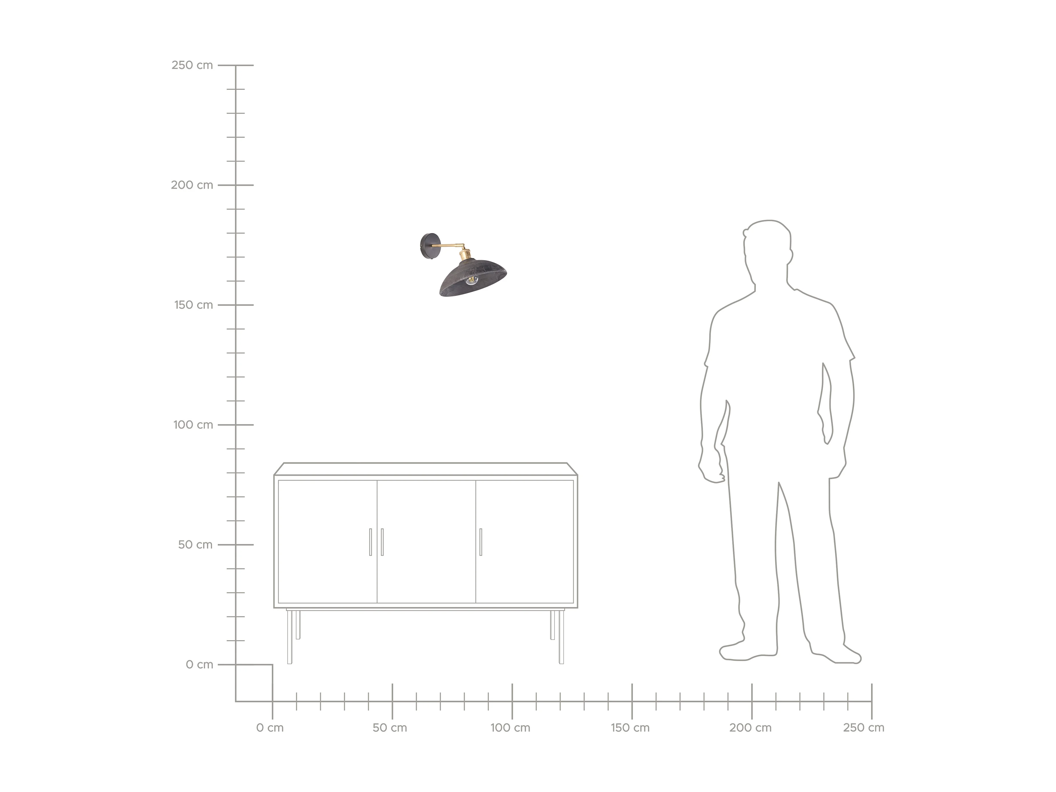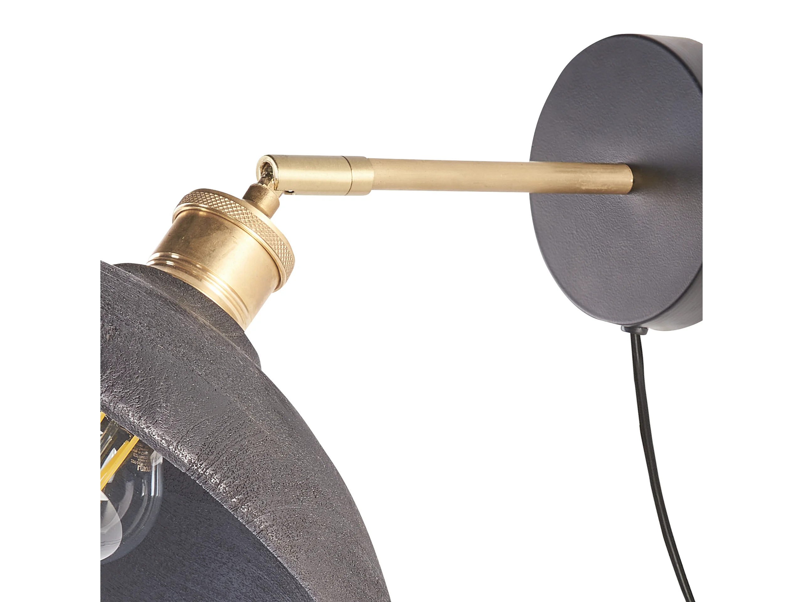 Wandlampe Mango-Holz schwarz / messing mit 1 Schirm Kegelform verstellbar Yerala