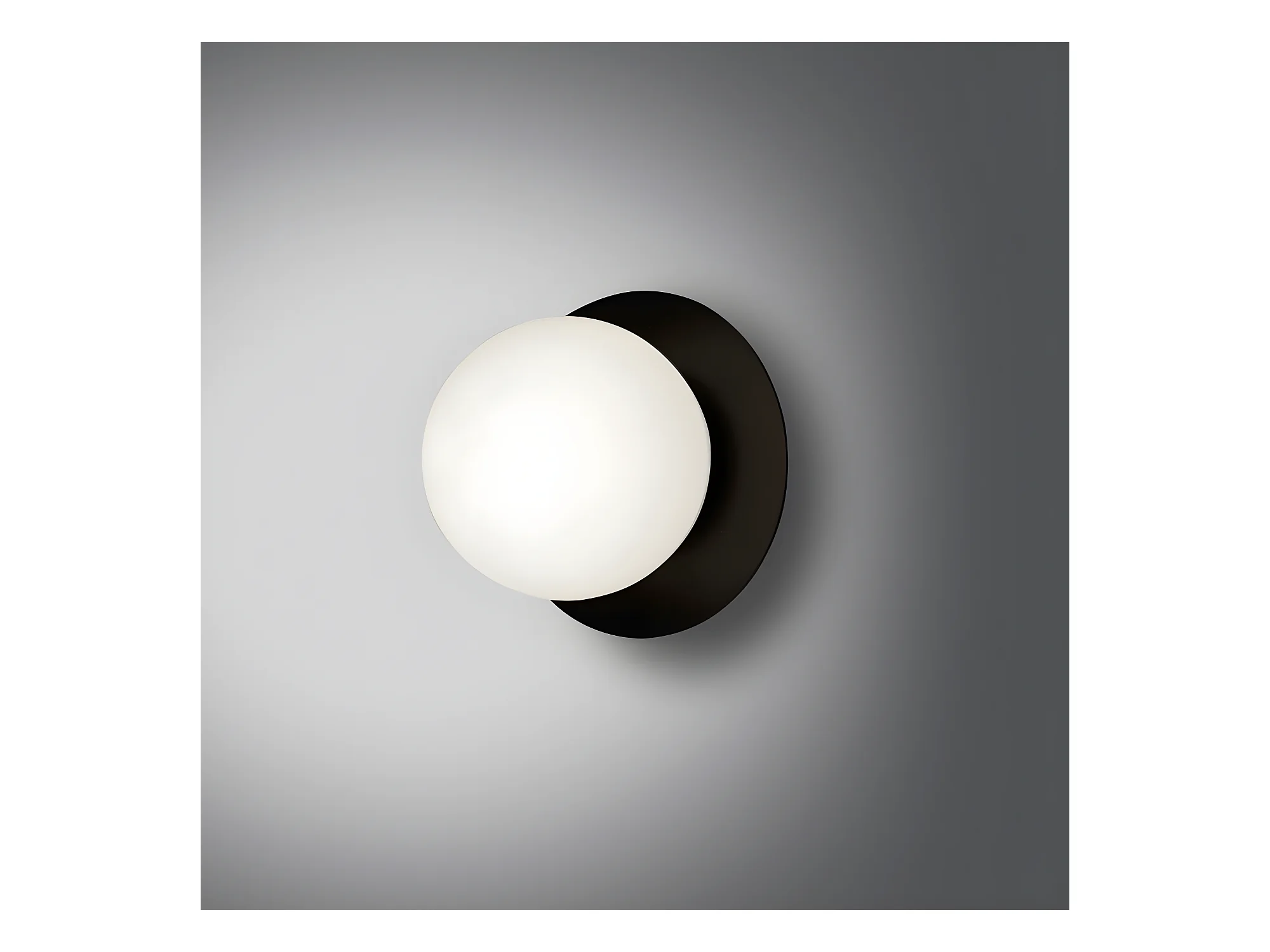 Wandleuchte Meltis im modernen Stil rund schwarz mit Glaskugel 1xE14