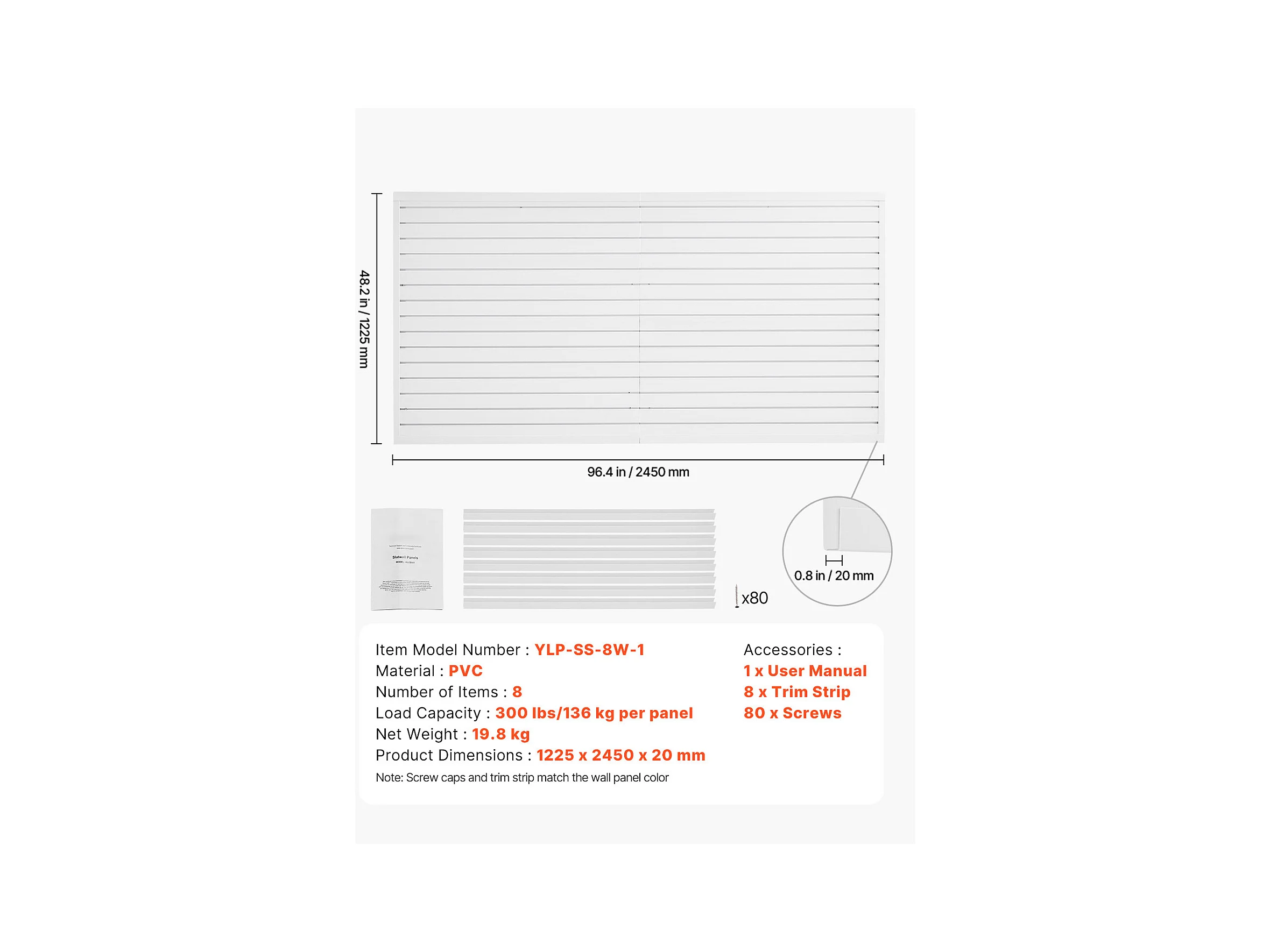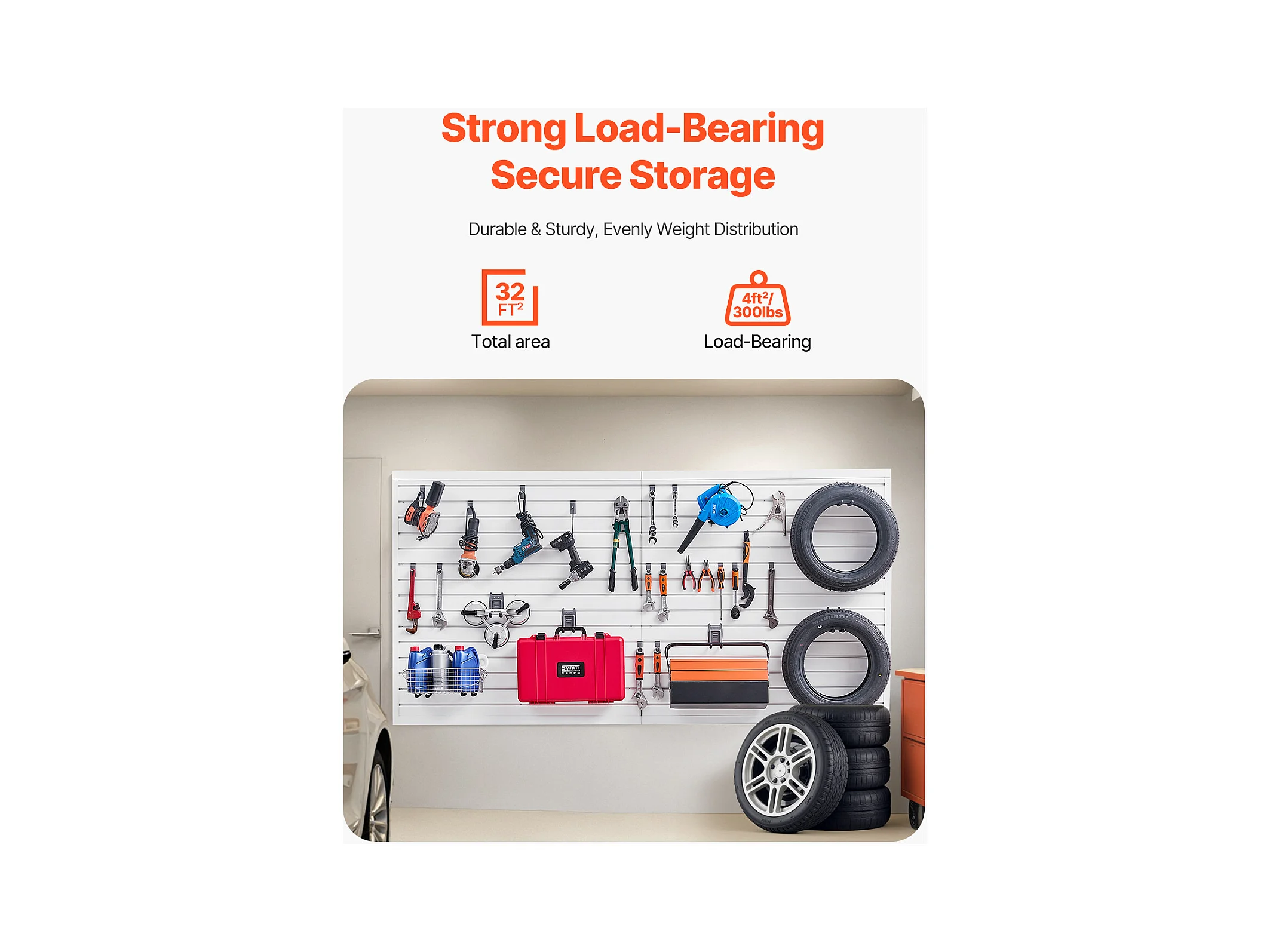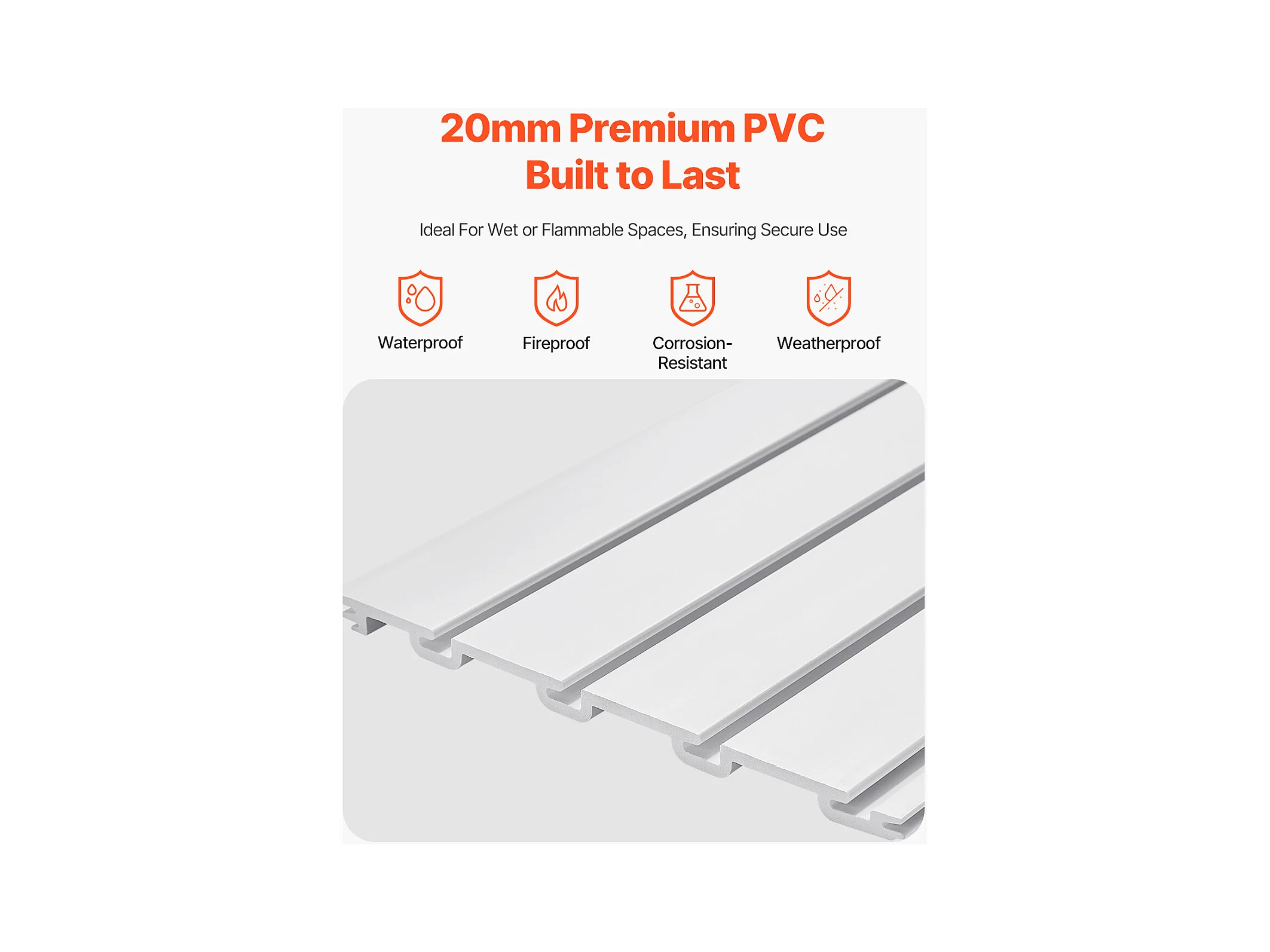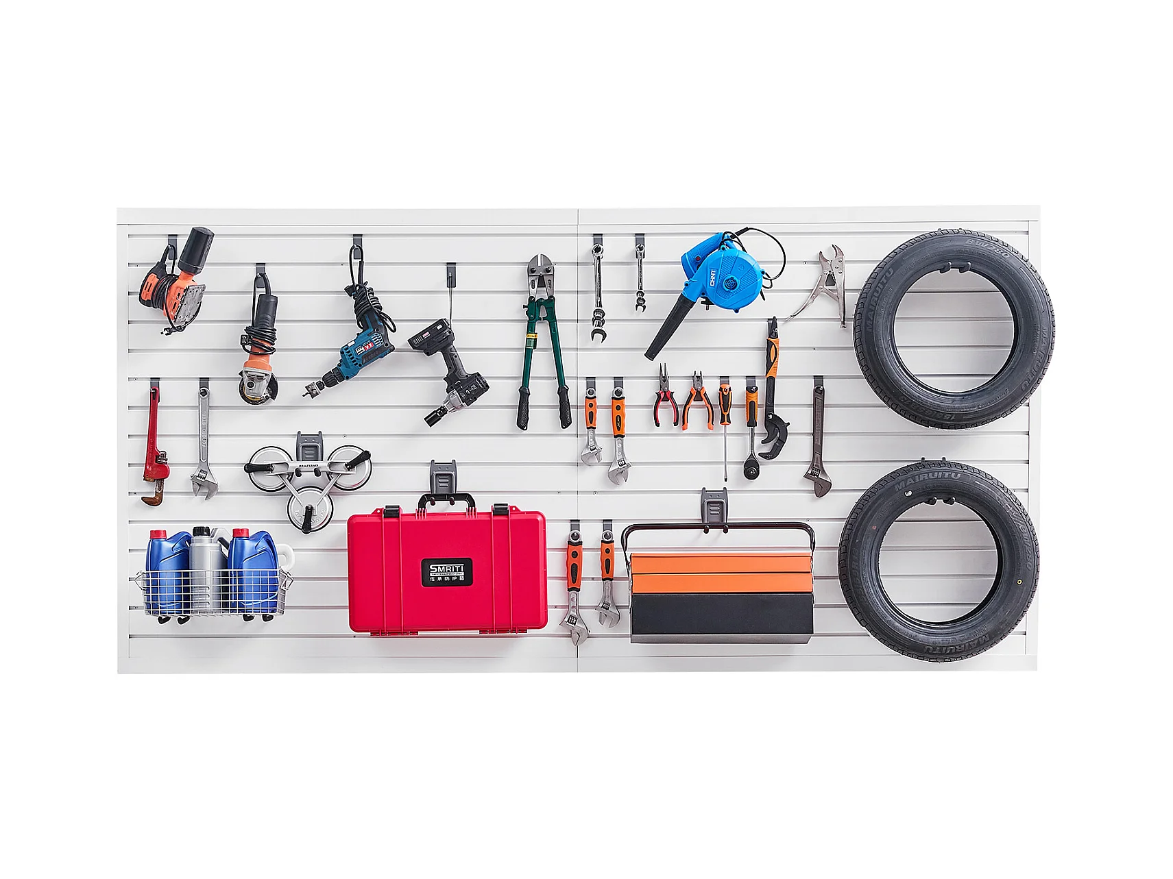 Wandpaneel mit Latten SucceBuy, 244 x 122 cm, weiße PVC-Garagenlatten, mit Montagezubehör