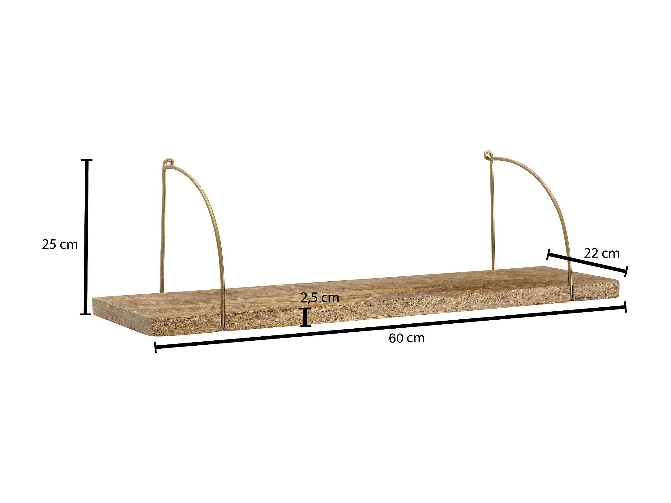Wandregal 60x25x22 cm Mango Massivholz / Metall Hängeregal Industrial, Kleines Design