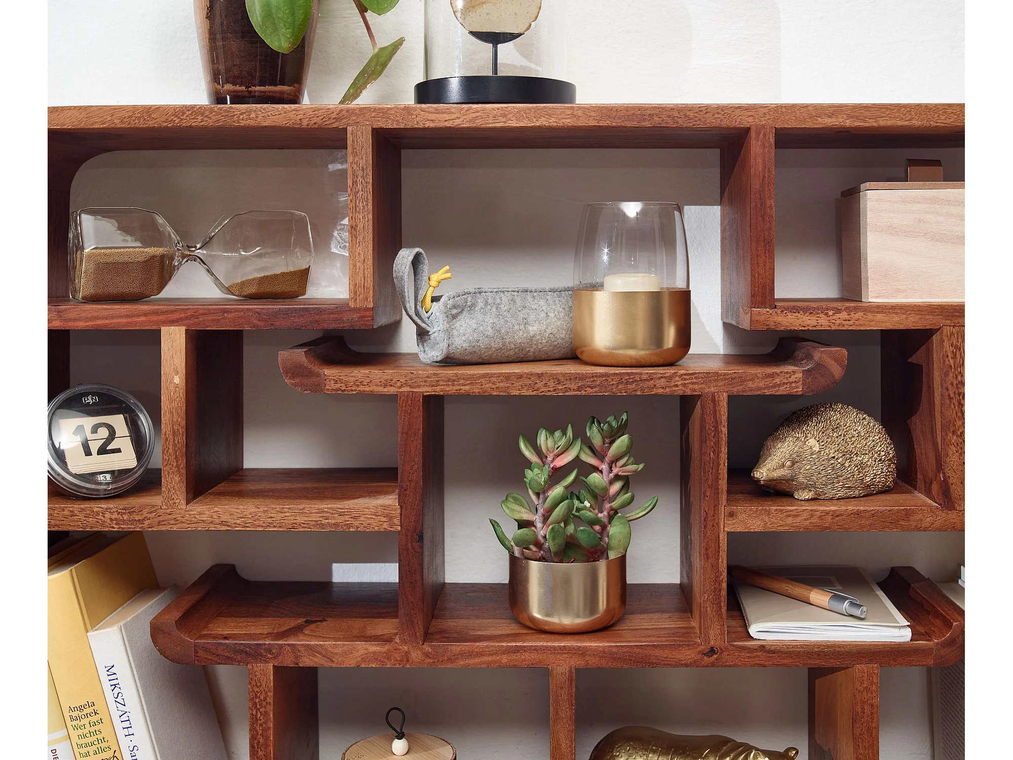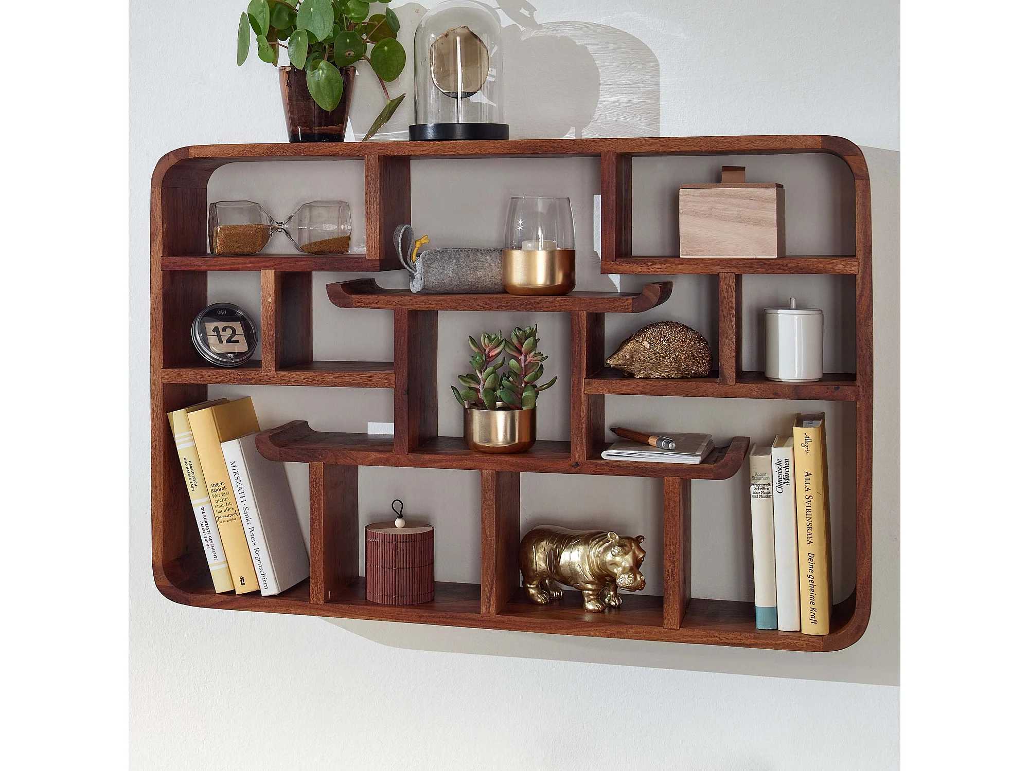 Wandregal 80x55x15 cm Sheesham Massivholz Hängeregal Modern Schwebend, Großes Design Schweberegal,