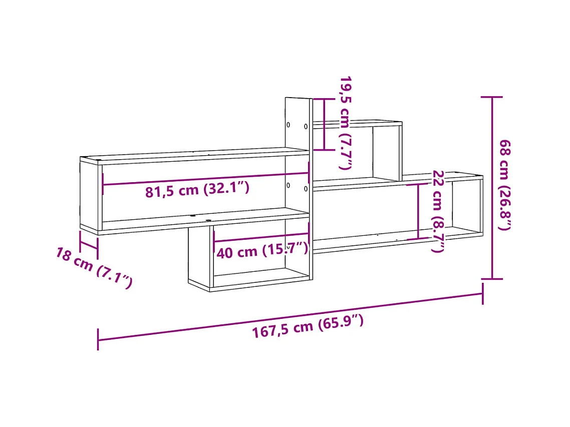 Wandregal Betongrau 167,5x18x68 cm Holzwerkstoff