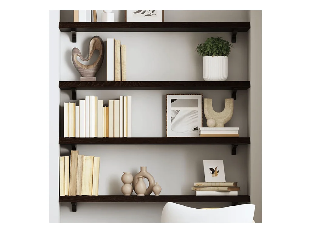 Wandregal Dunkelbraun 100x20x4 cm Massivholz Eiche Behandelt