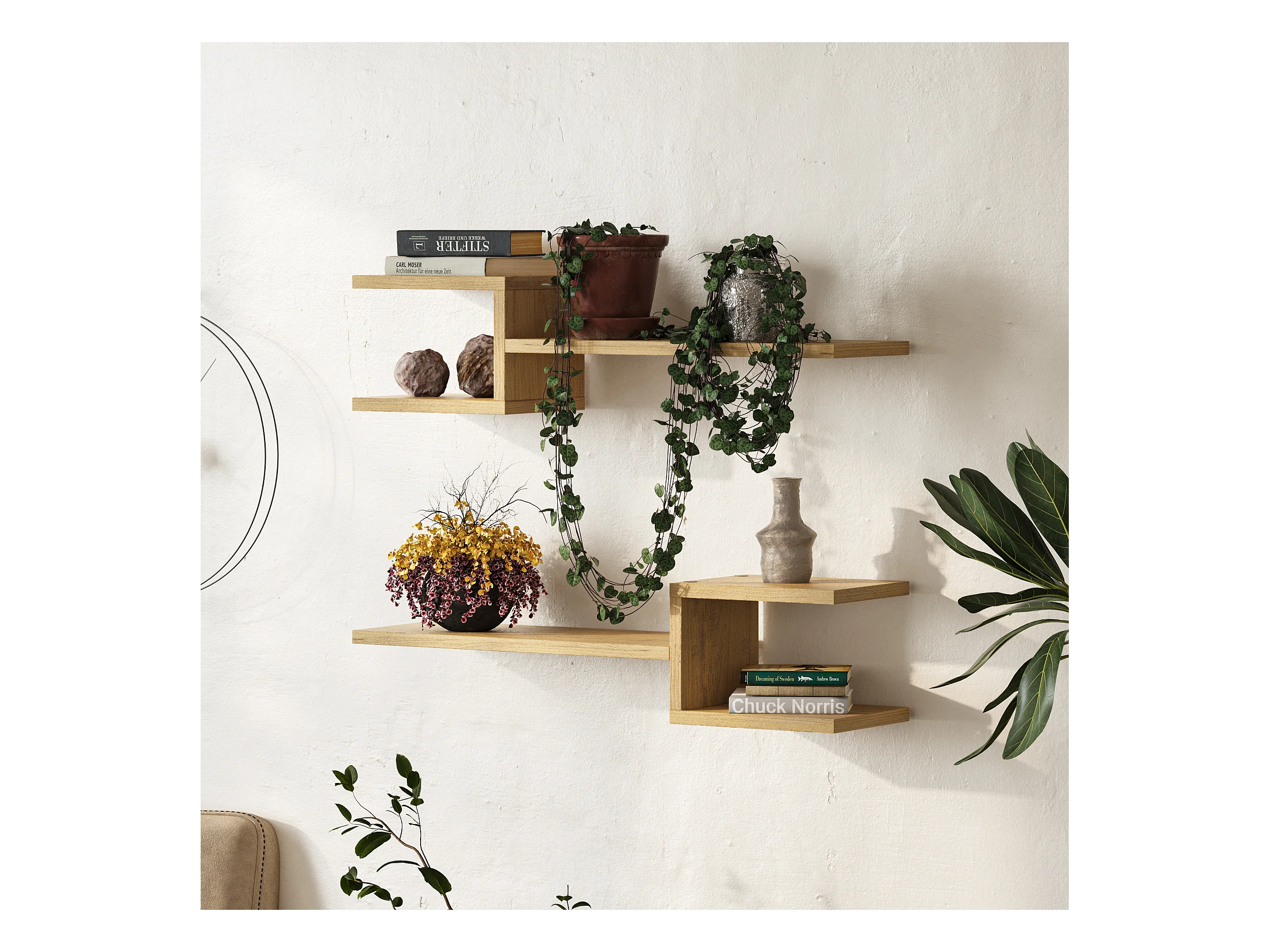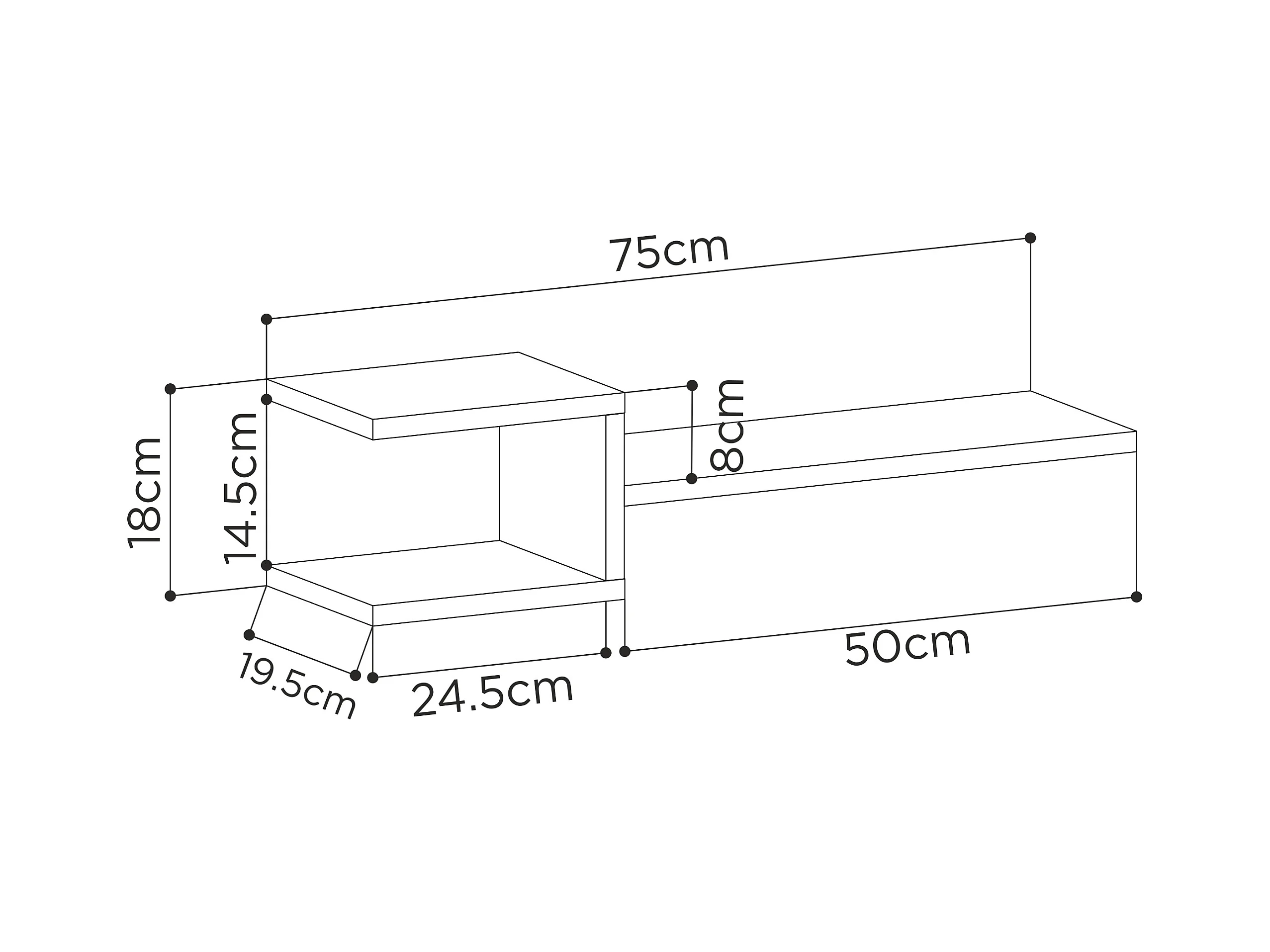 Wandregal FORK 2er Set - Eiche - 75 x 19,6 x 18,2 cm