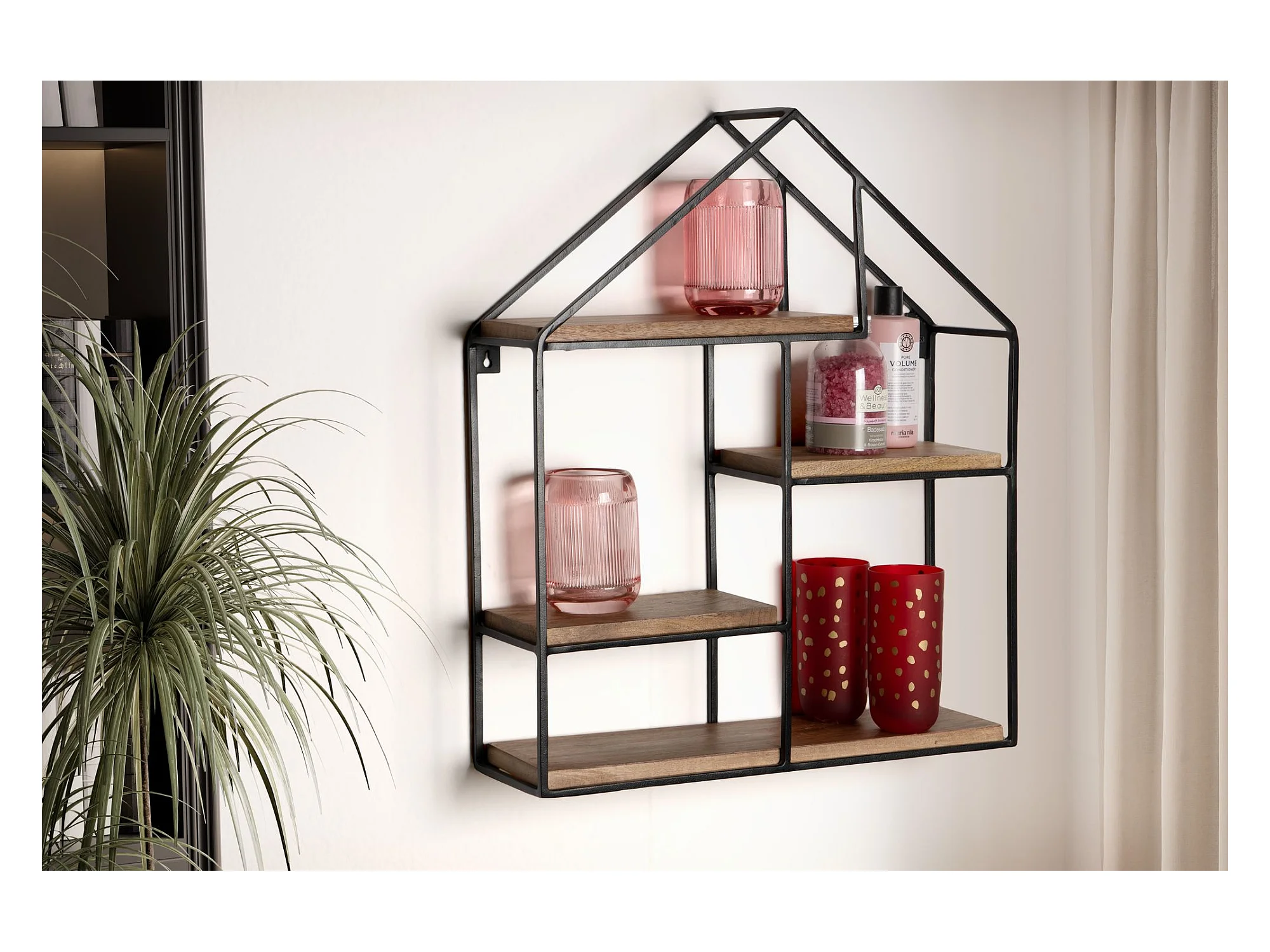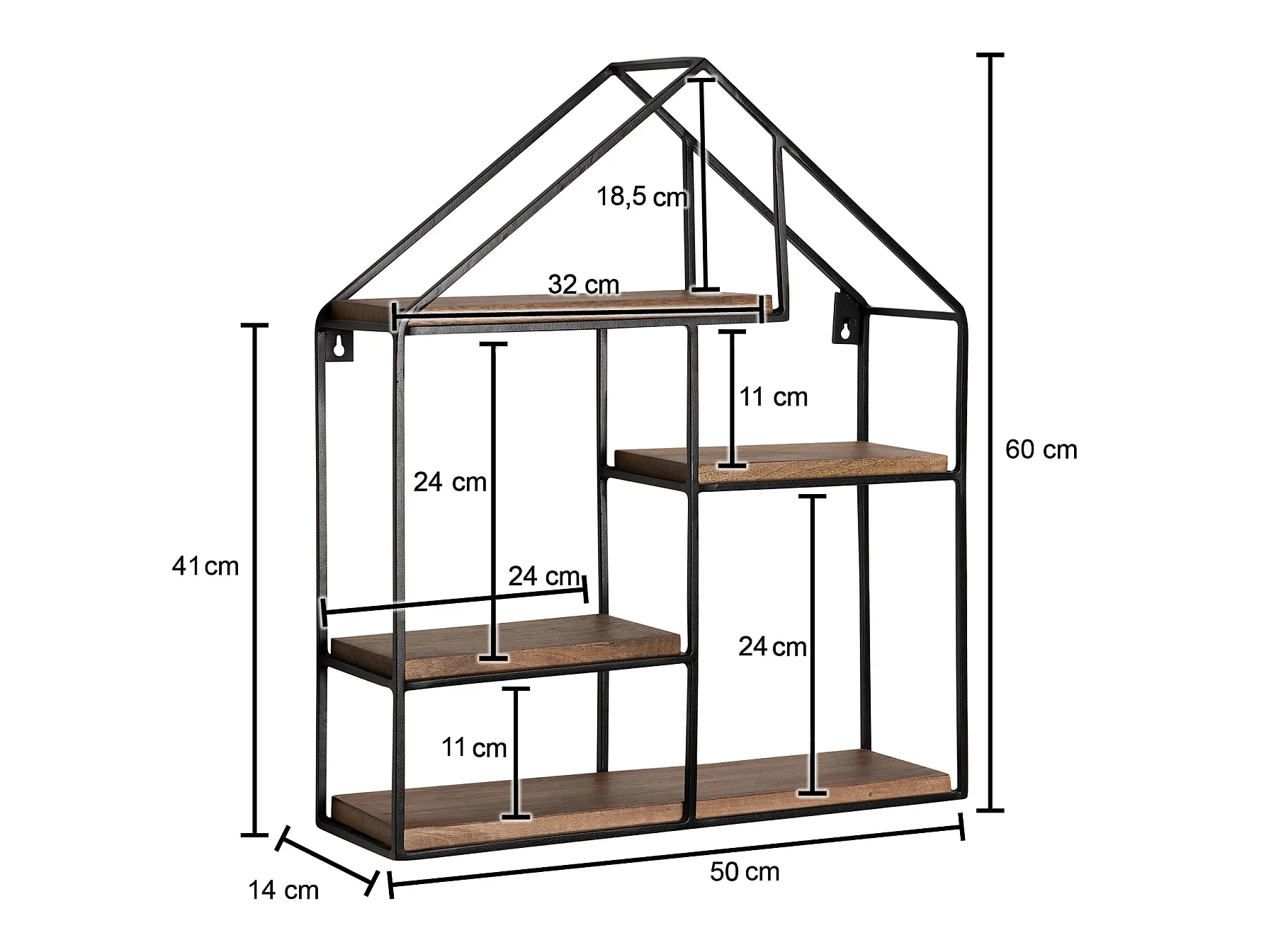 Wandregal Hängeregal Holz Metall 50x60x14 cm Regal Haus Industrial