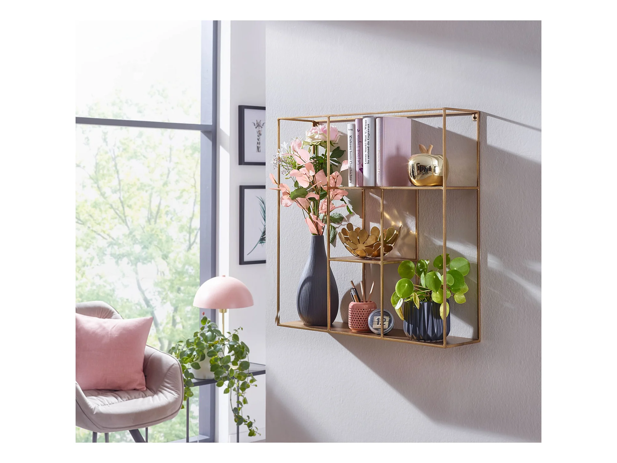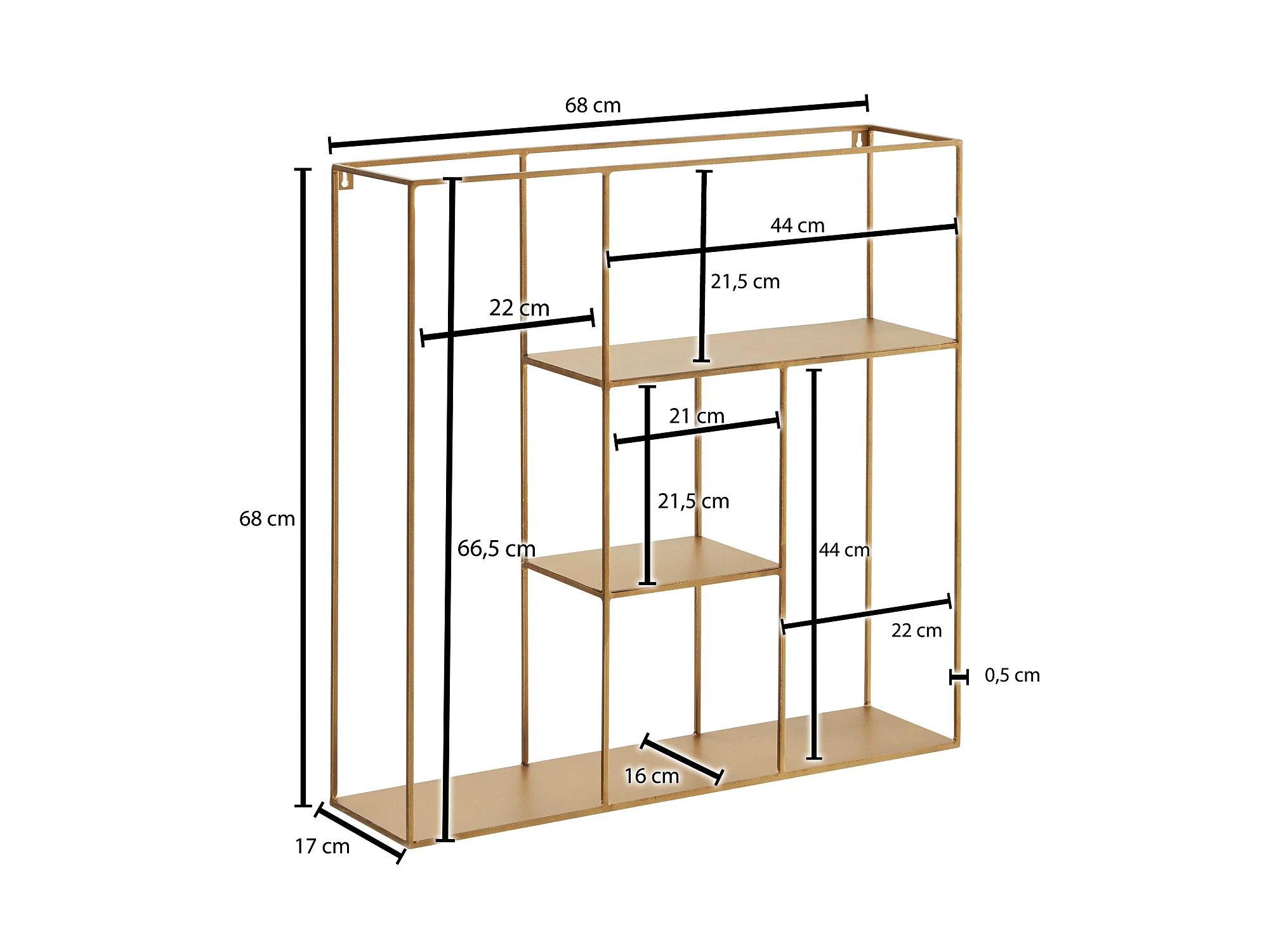 Wandregal Hängeregal Metall 68x68x17cm Regal Schweberegal Klein Gold