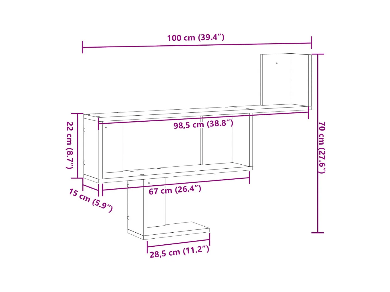 Wandregal Schwarz 100x15x70 cm Holzwerkstoff