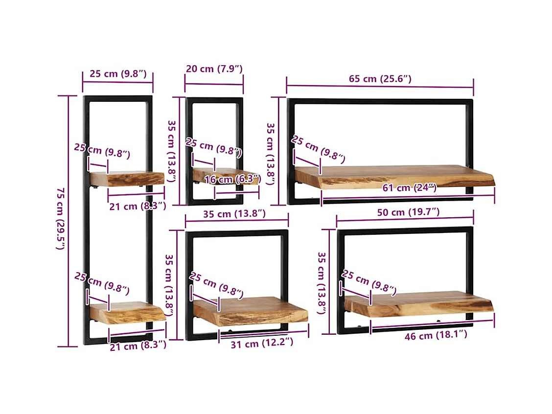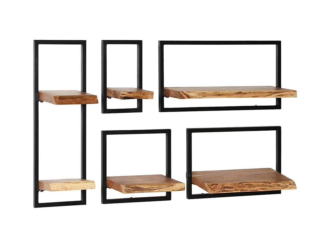 Wandregal-Set 5-tlg. Akazienholz Massiv und Stahl