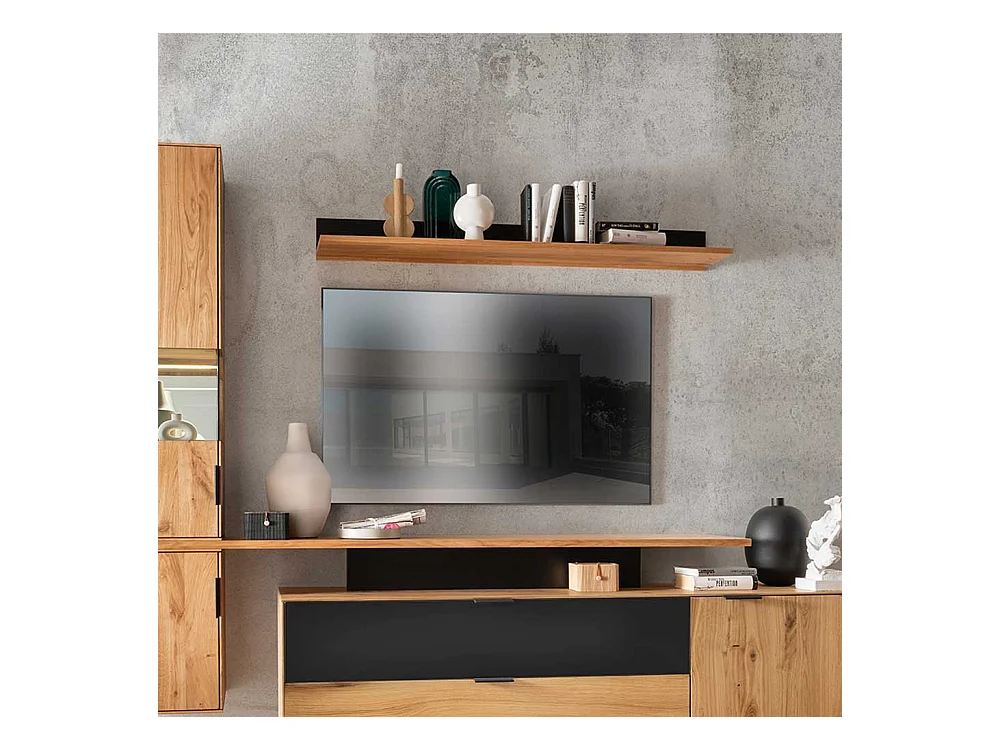 Wandregal Wohnzimmer in Wildeichefarben und Anthrazit 140 cm breit