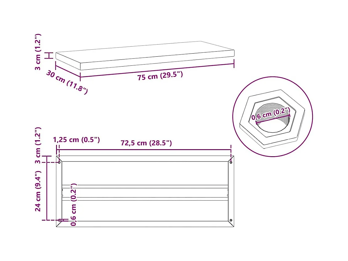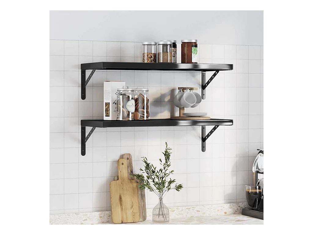 Wandregale 2 Stk. 75x30x3 cm Schwarz Edelstahl