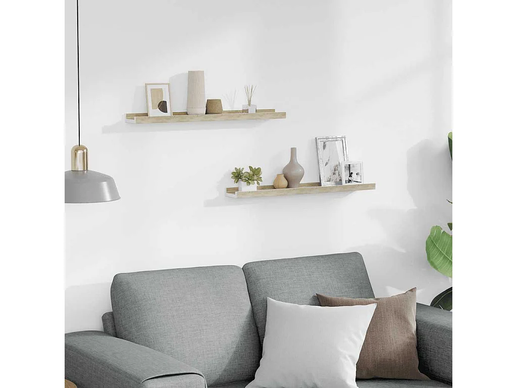 Wandregale 2 Stk. Weiß und Sonoma-Eiche 60x9x3 cm