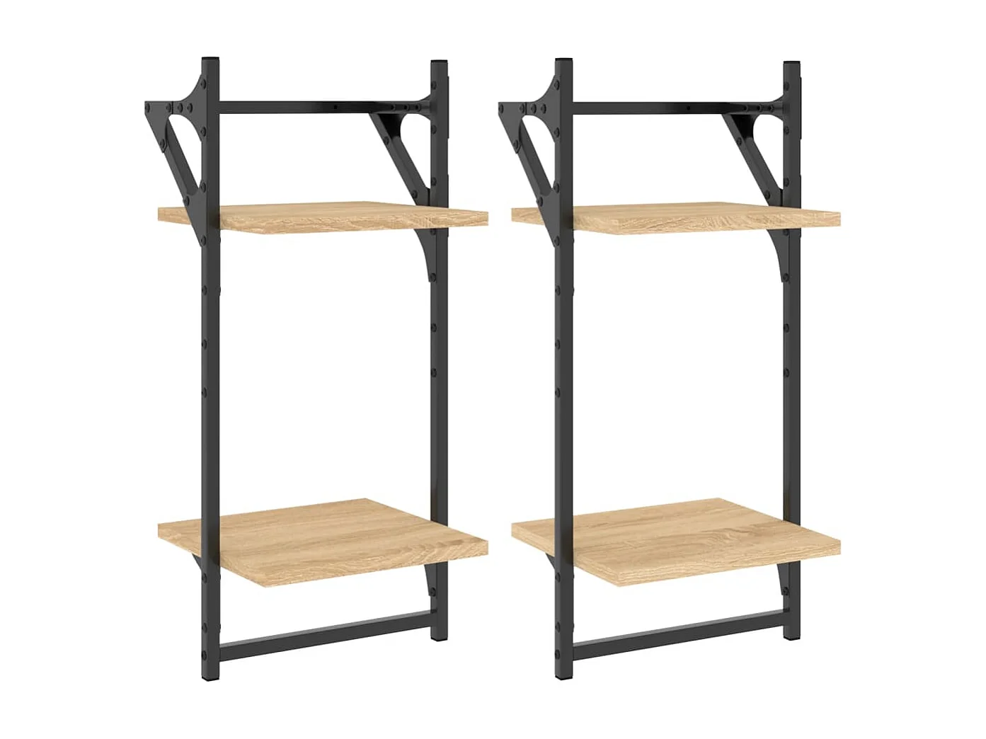 Wandregale mit 2 Ablagen & Stangen 2 Stk. Sonoma Eiche