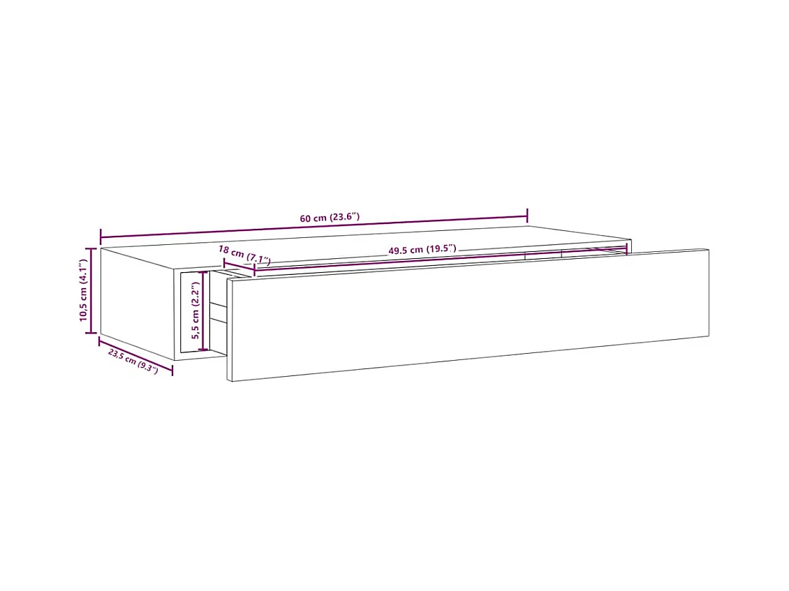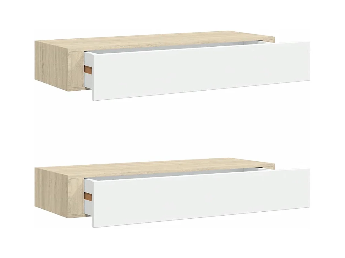 Wandschubladenregale 2 Stk. Eiche und Weiß 60x23,5x10cm MDF