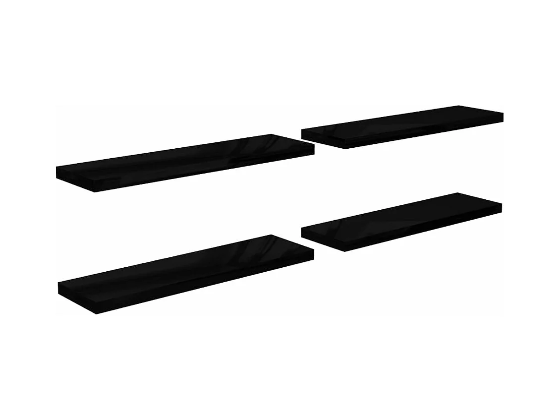 Wandregale Schwebend 4 Stk. Hochglanz-Schwarz 90x23,5x3,8cm MDF