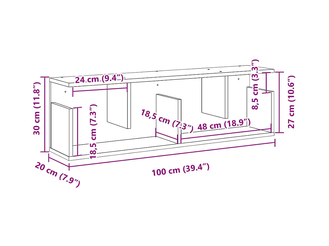 Wandschrank 100x20x30 cm Betongrau Holzwerkstoff
