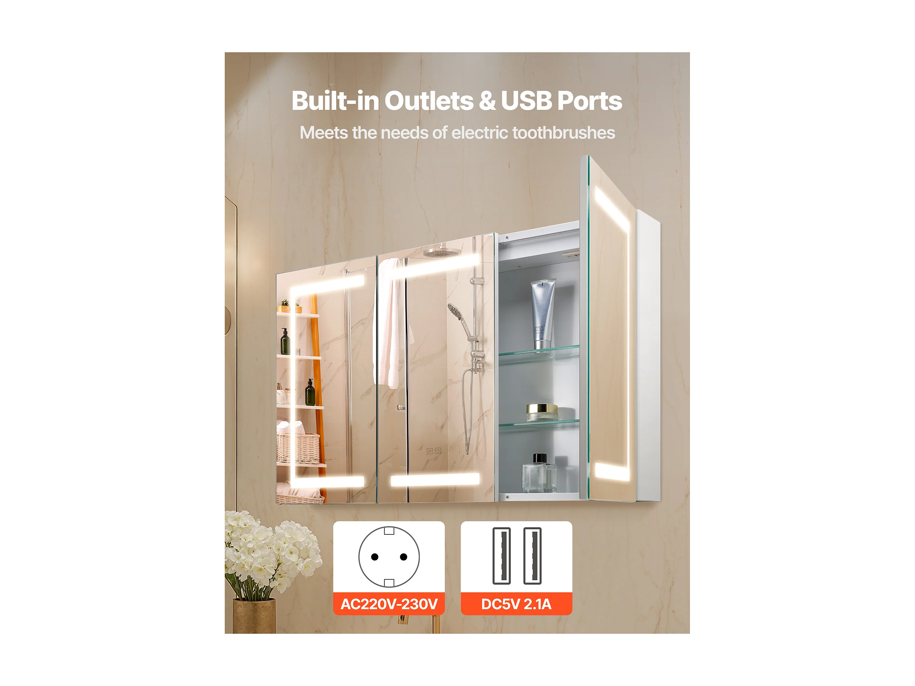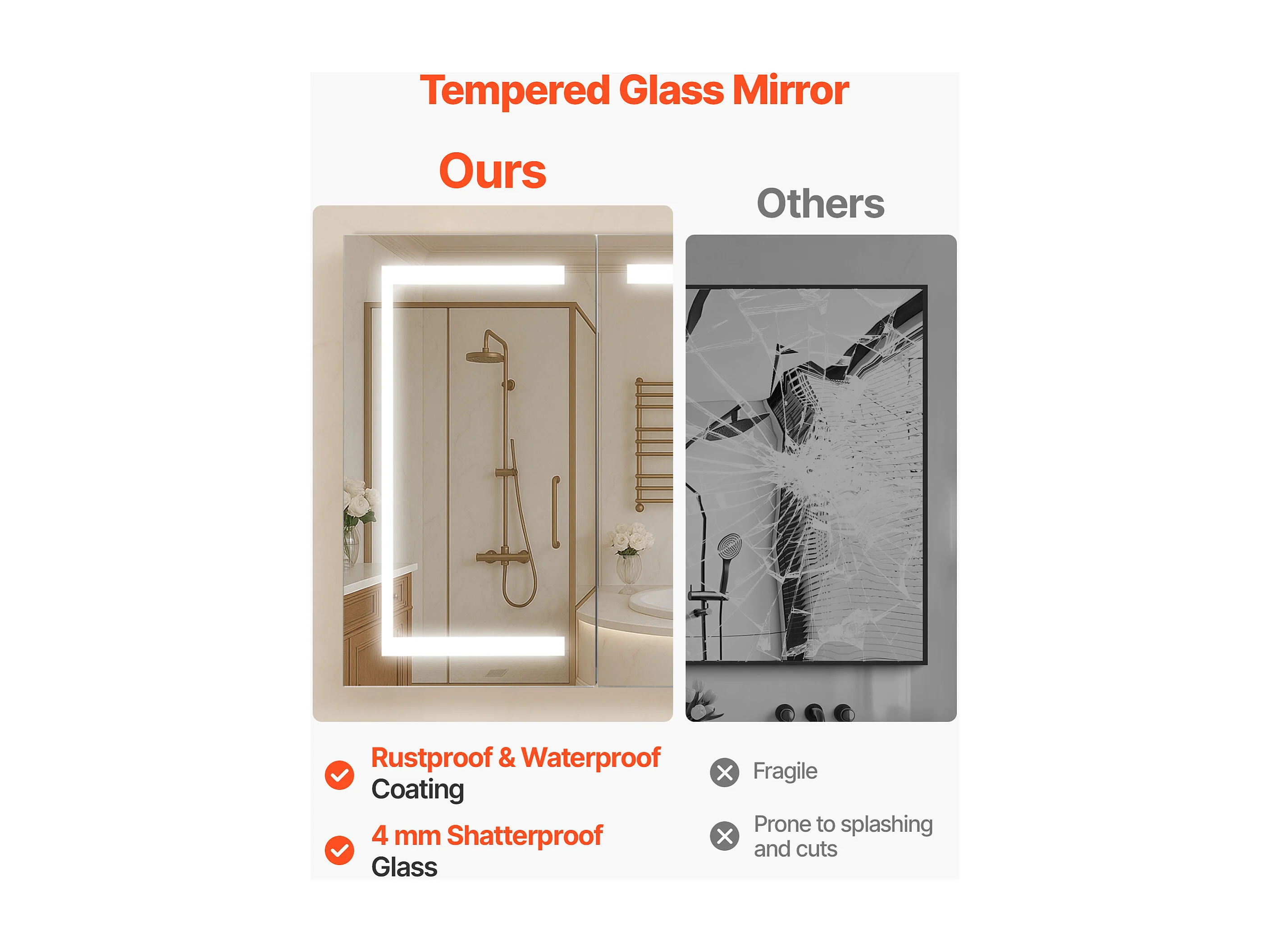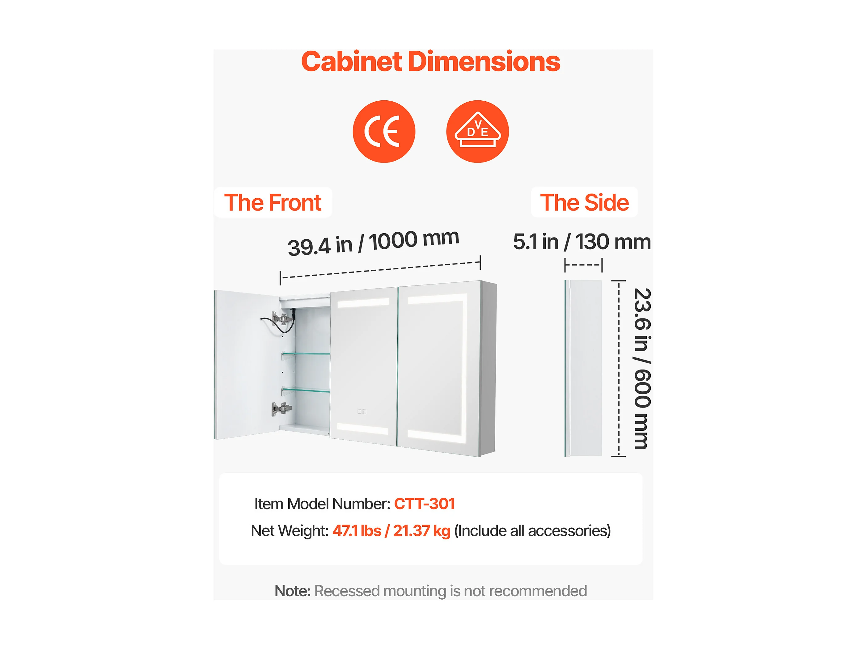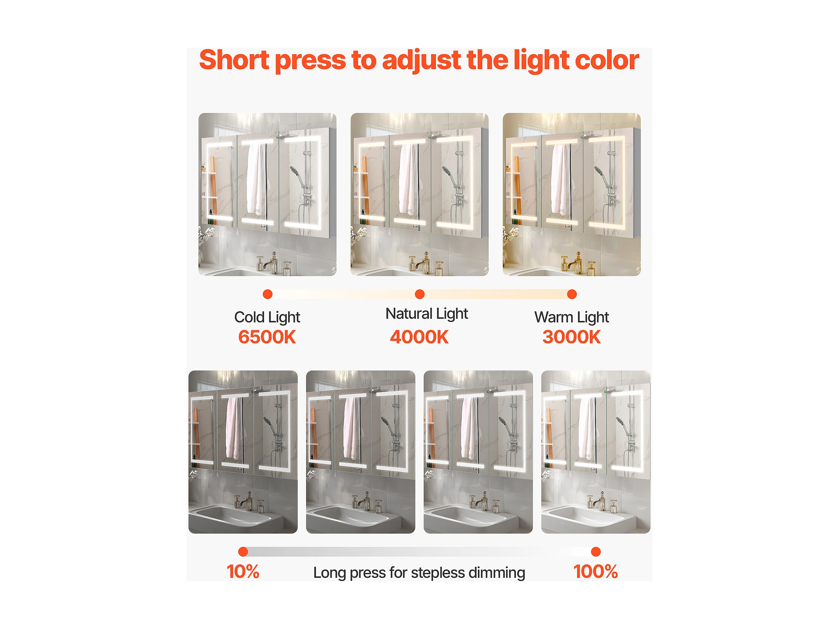 Wandschrank für Badezimmer SucceBuy Spiegelschrank mit Spiegel aus Gehärtetem Glas und LED-Beleuchtung mit 3 Einstellbaren Farben und Dimmfunktion, 100 x 60 cm