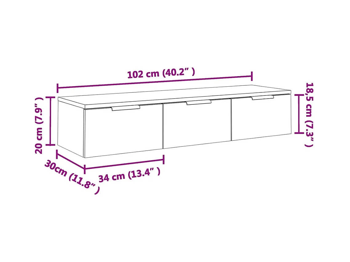 Wandschrank Grau Sonoma 102x30x20 cm Holzwerkstoff