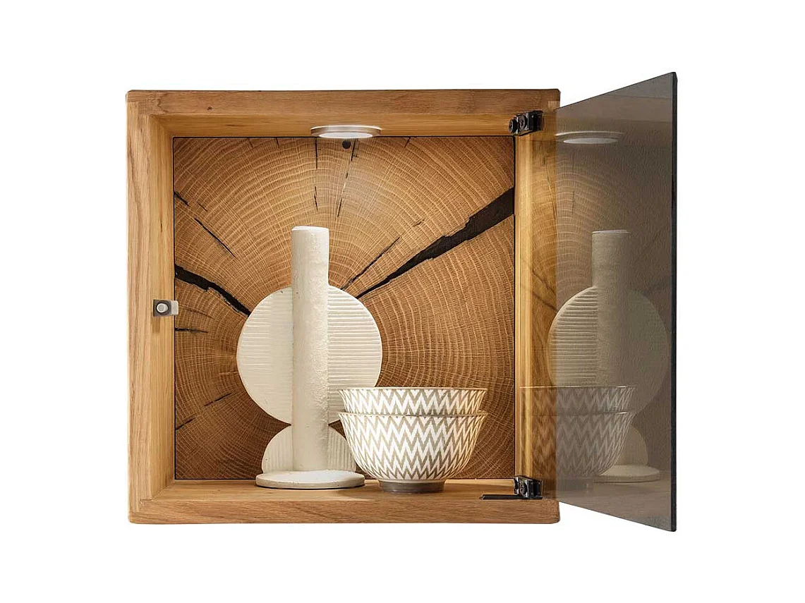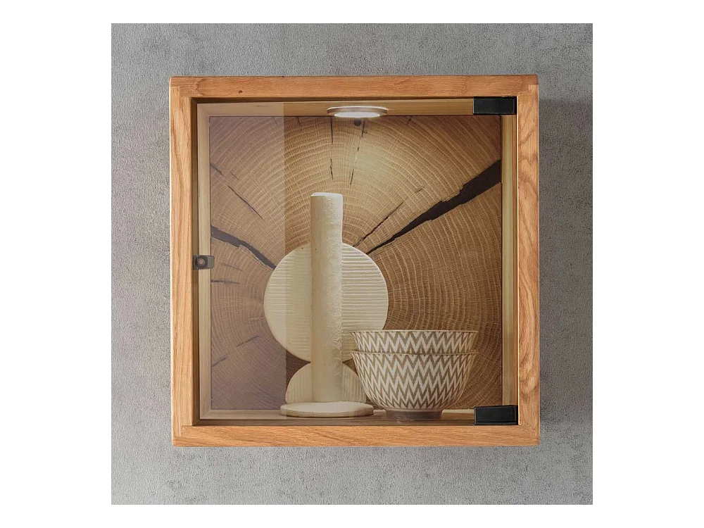 Wandschrank mit Glastür aus Wildeiche Massivholz 34 cm breit