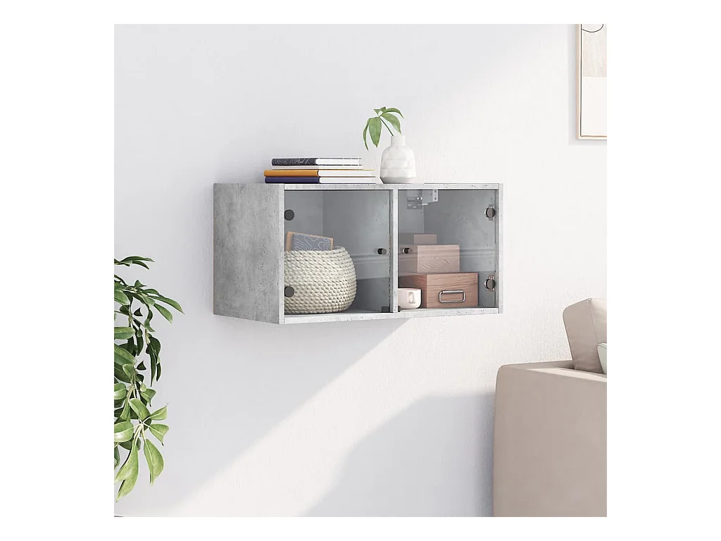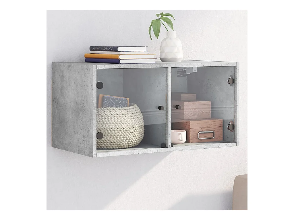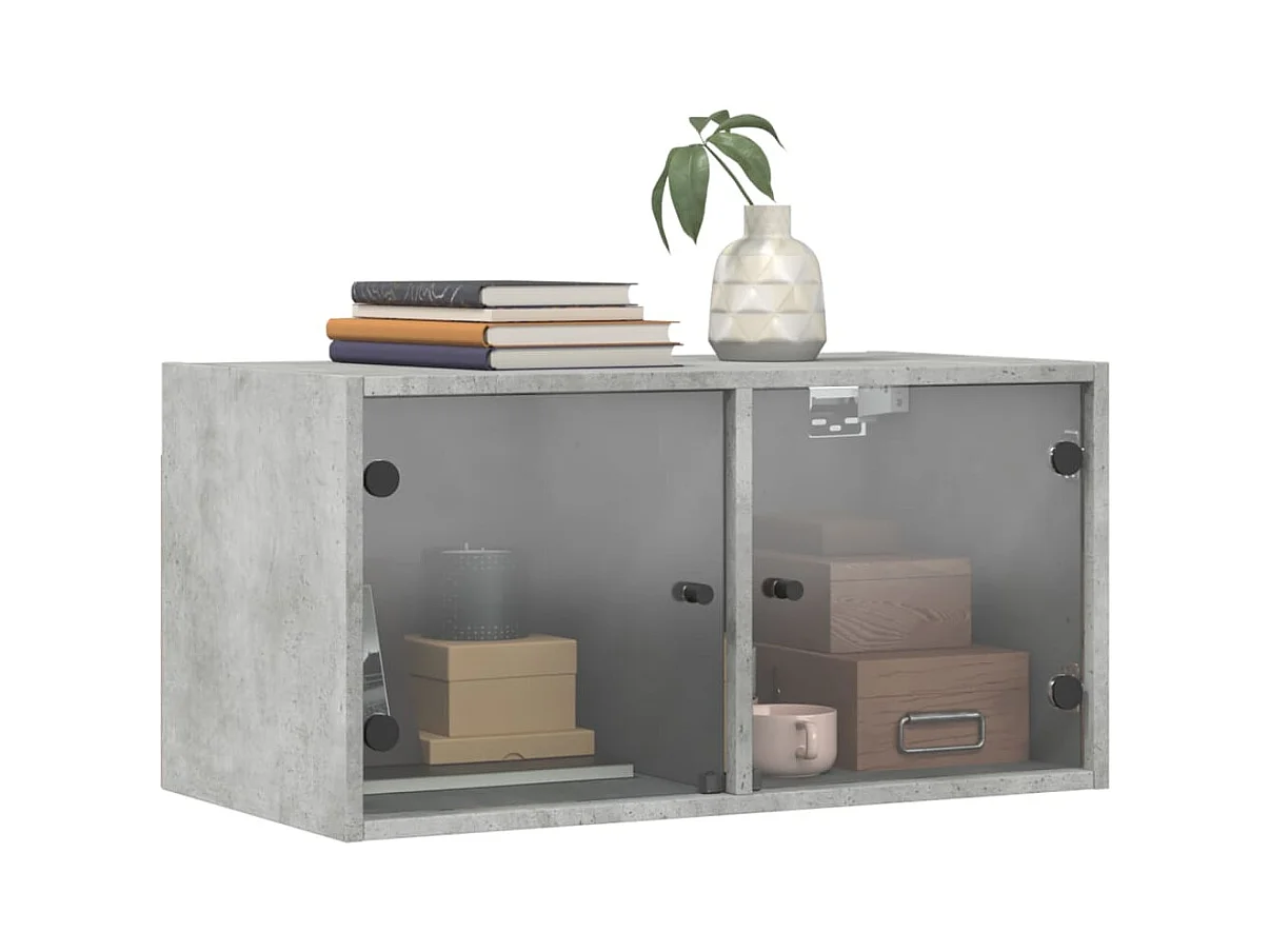 Wandschrank,Wandhängeschrank mit Glastüren Betongrau 68,5x37x35 cm -gkd836601