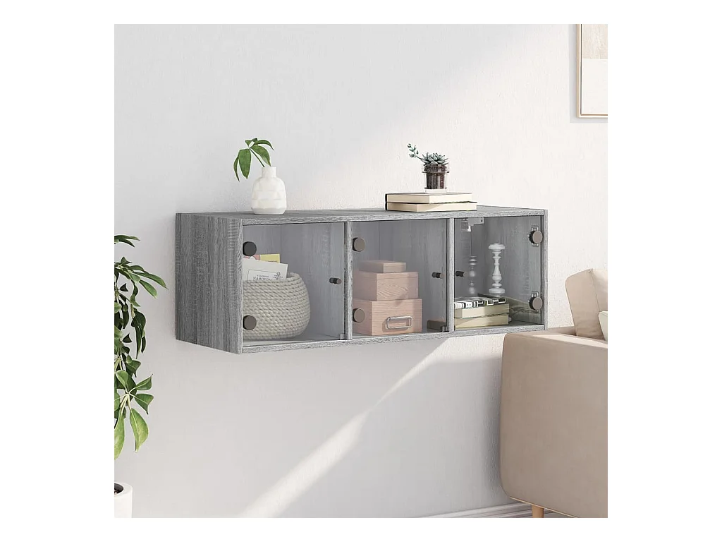 Wandschrank,Wandhängeschrank mit Glastüren Grau Sonoma 102x37x35 cm -gkd713200