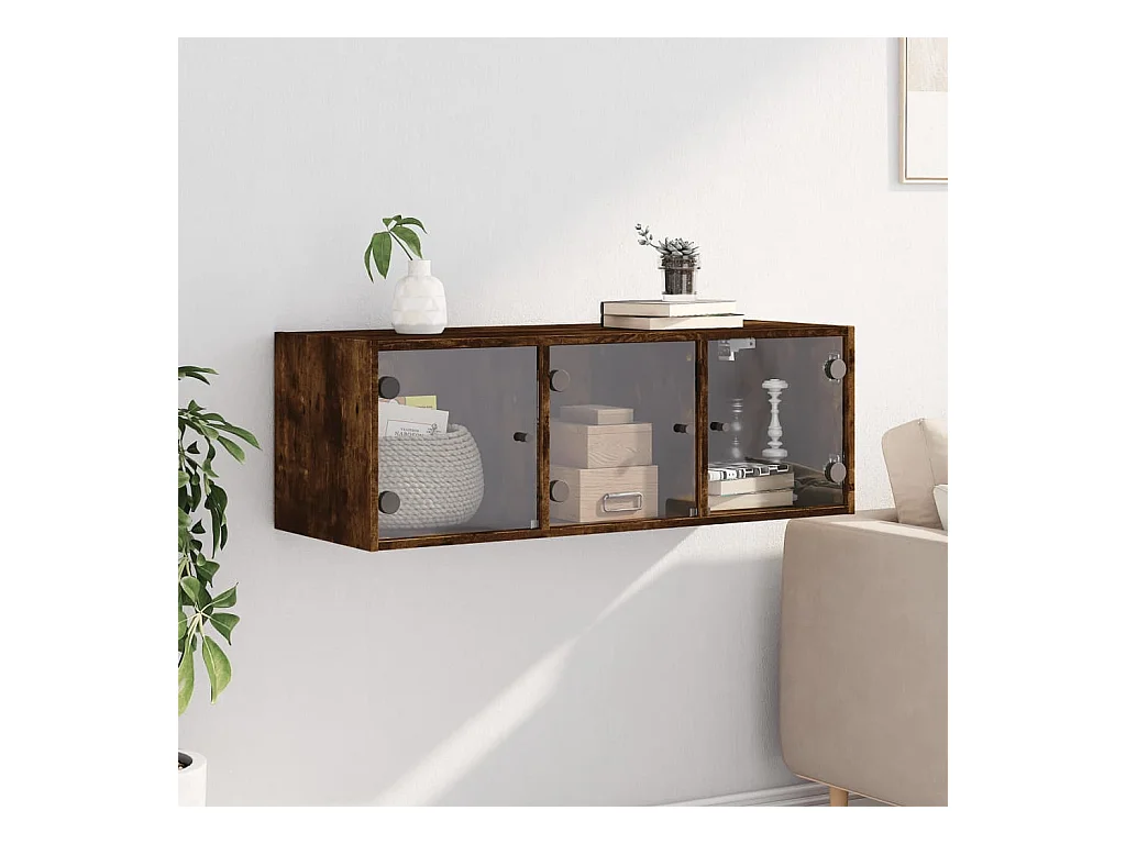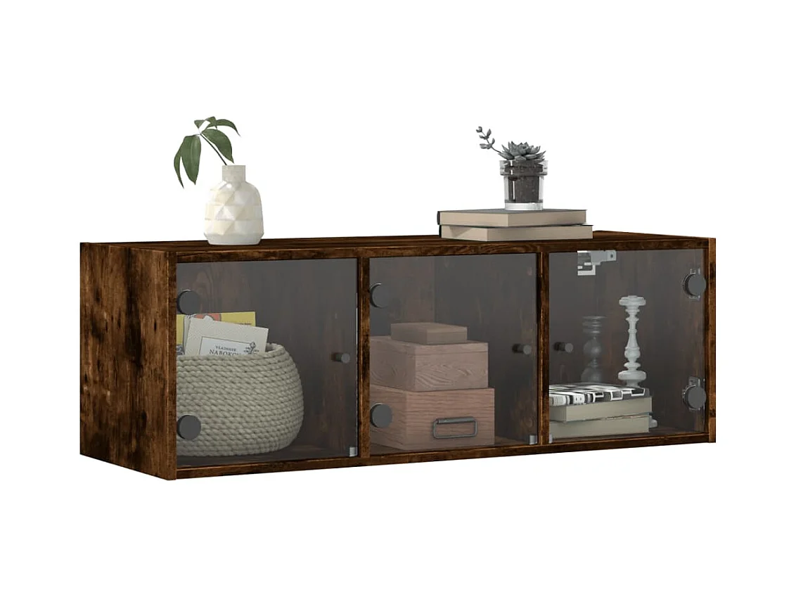Wandschrank,Wandhängeschrank mit Glastüren Räuchereiche 102x37x35 cm -gkd597563