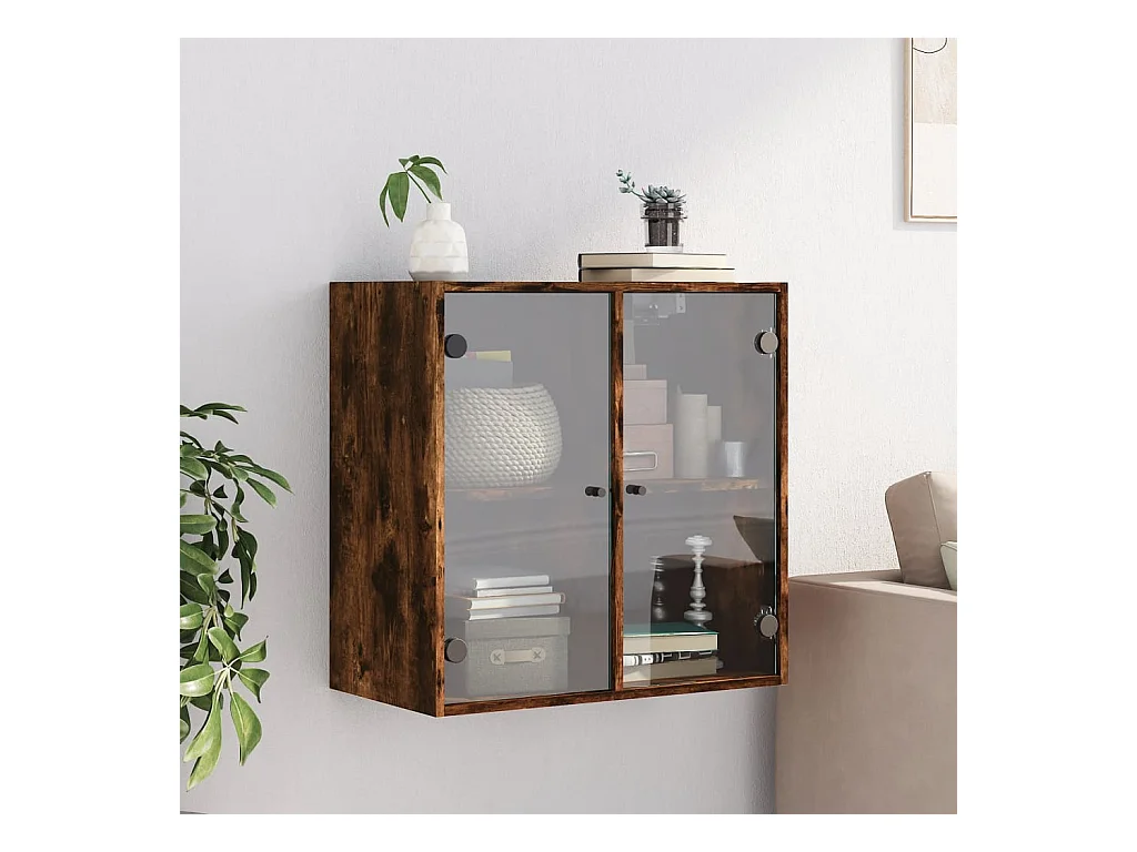Wandschrank,Wandhängeschrank mit Glastüren Räuchereiche 68x37x68,5 cm -gkd546812