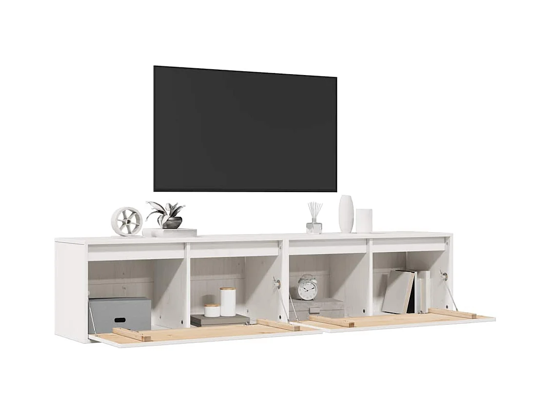 Wandschränke 2 Stk. Weiß 80x30x35 cm Massivholz Kiefer