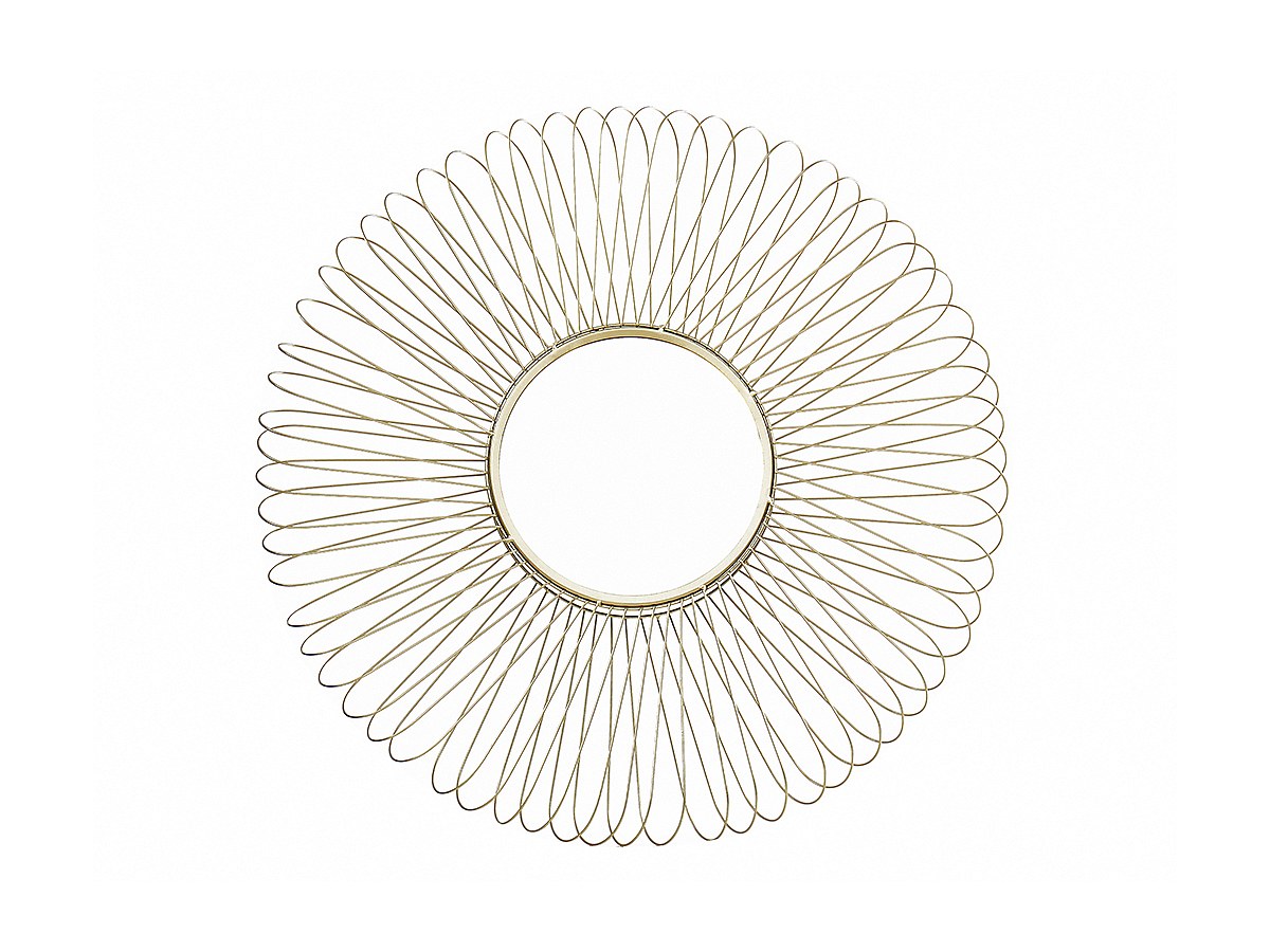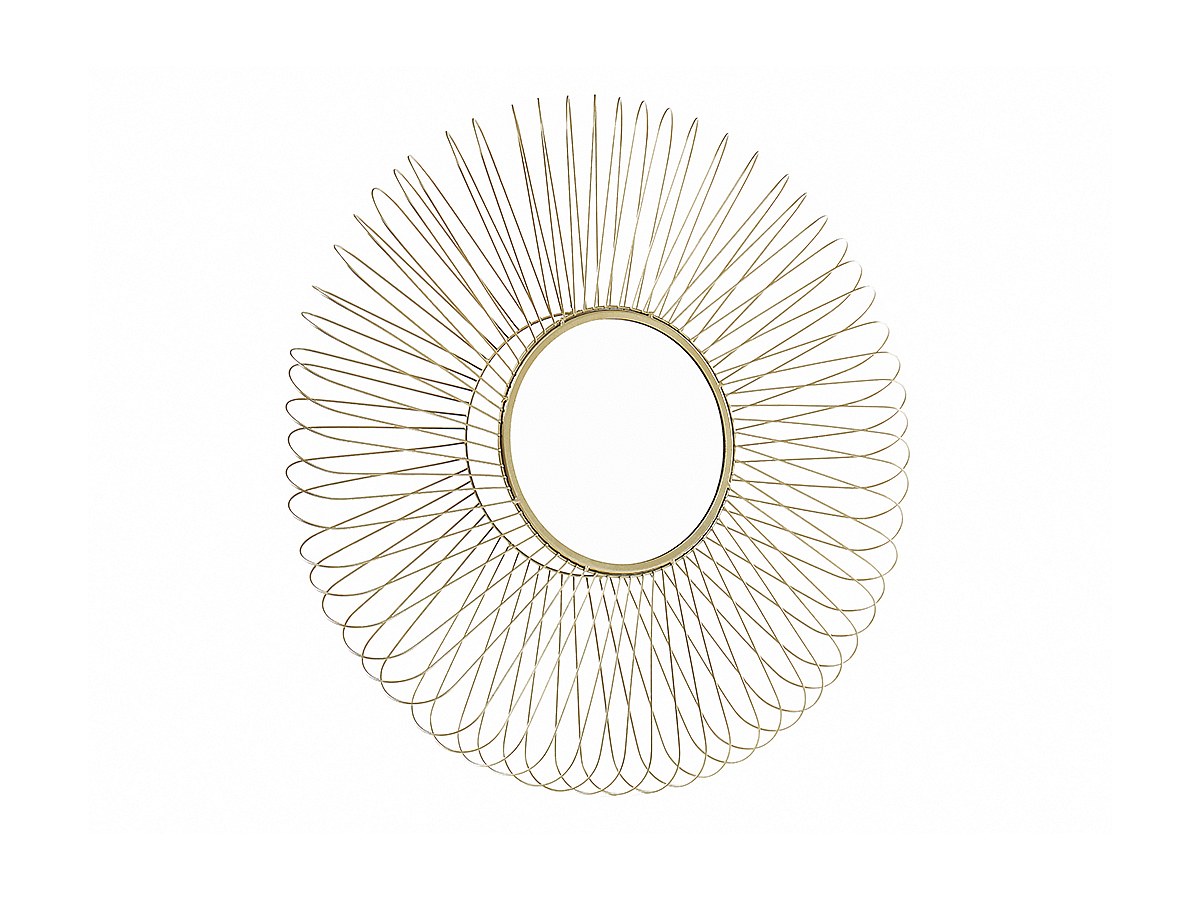 Mit seiner Drahtstruktur aus goldfarbenem Metall ist der runde Spiegel DALIA eine perfekte Darstellung des Art-Déco-Stils.