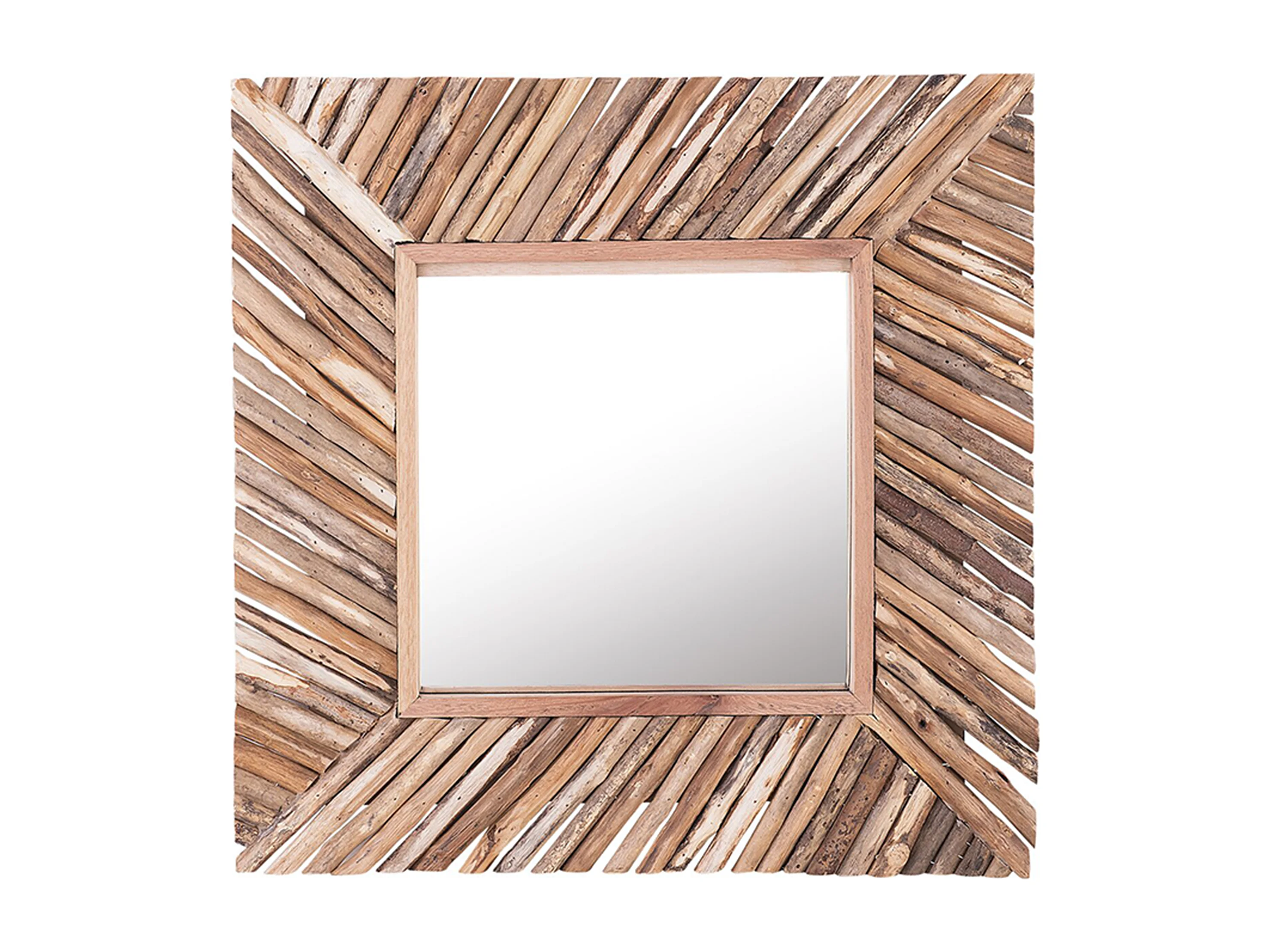 Moderner Wanspiegel quadratisch hellbraun Holz 60 x 60 cm rustikaler Stil Kanab