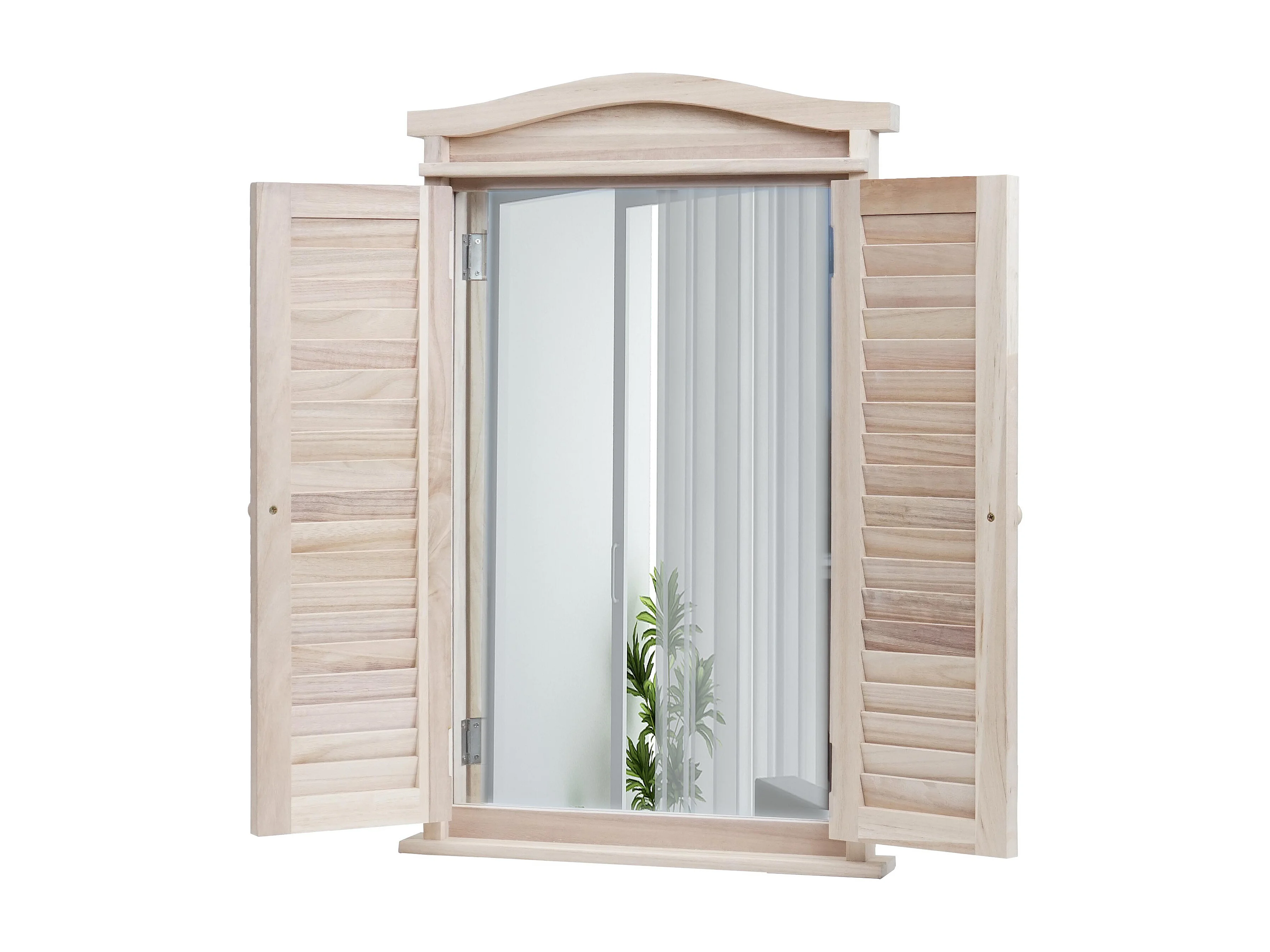 Wandspiegel mit Fensterläden, Shabby naturfarben