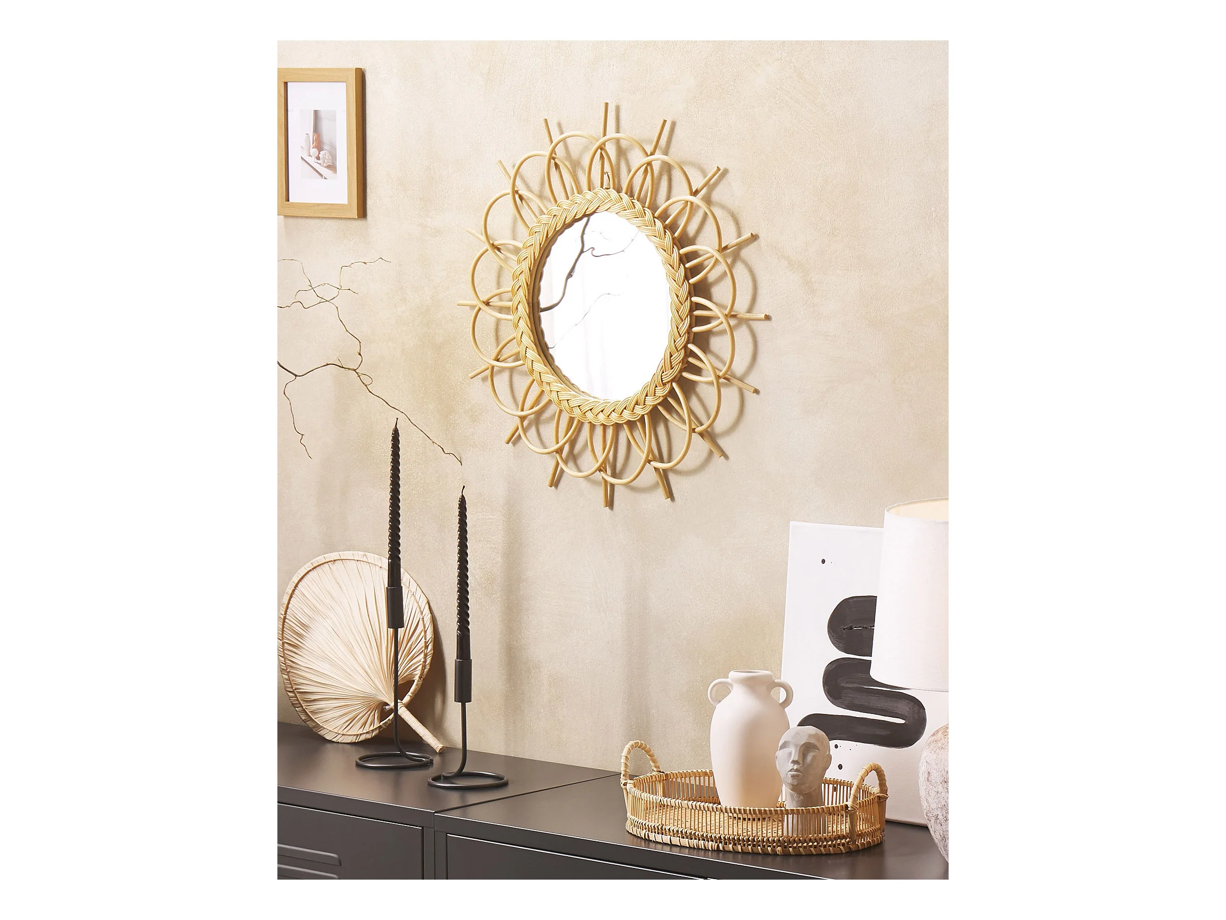 Wandspiegel TELAKIA 60 cm 60 cm Rattan Naturfarben