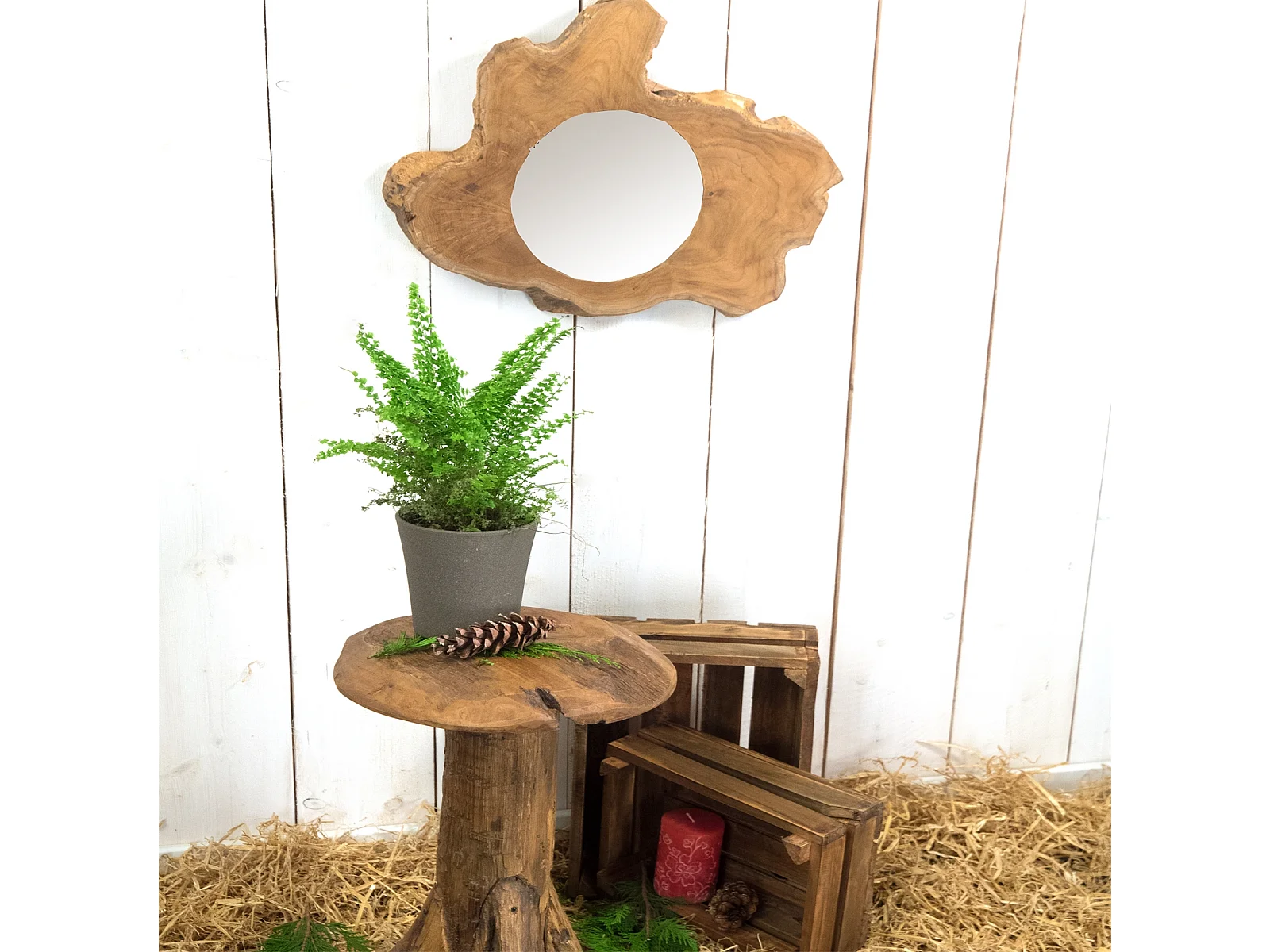 WANDSPIEGEL Tiko Teakholz Wurzel, rund, Unikat naturfarben
