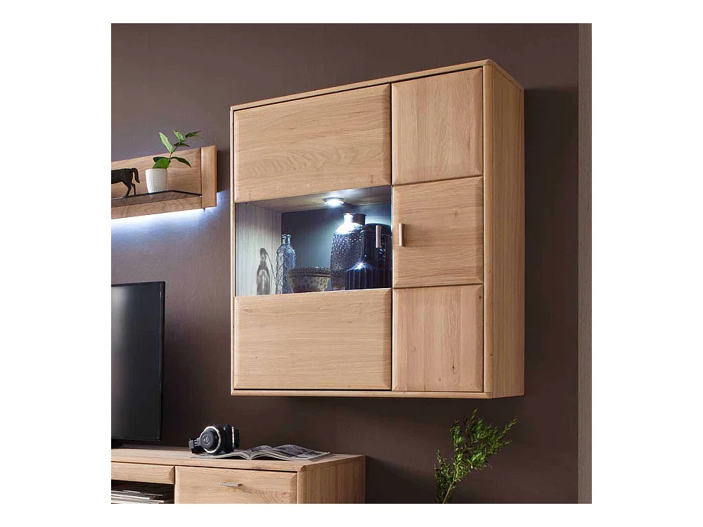 Wandvitrine aus Eiche Bianco LED Beleuchtung