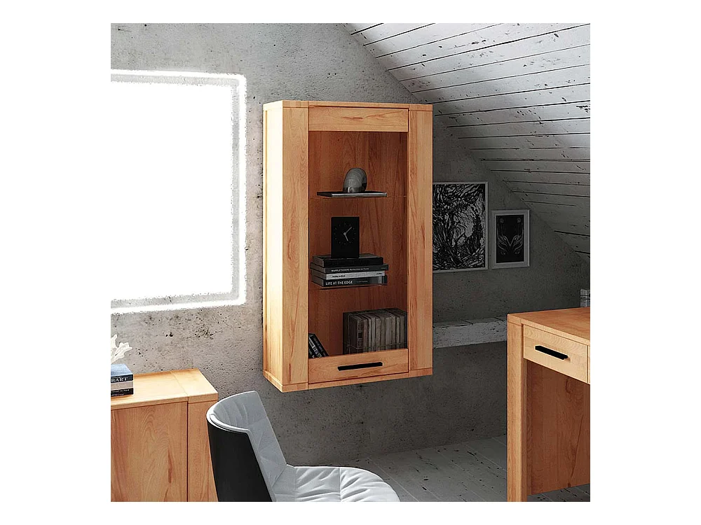 Wandvitrine aus Kernbuche Massivholz 120 cm hoch