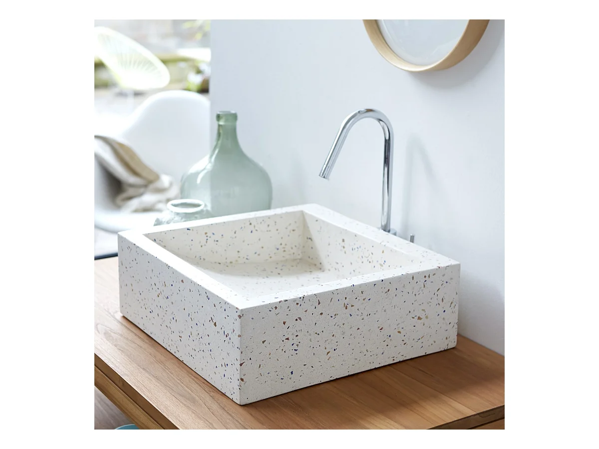 Waschbecken Aufsatzwaschbecken in weiß gesprenkelt oval 40