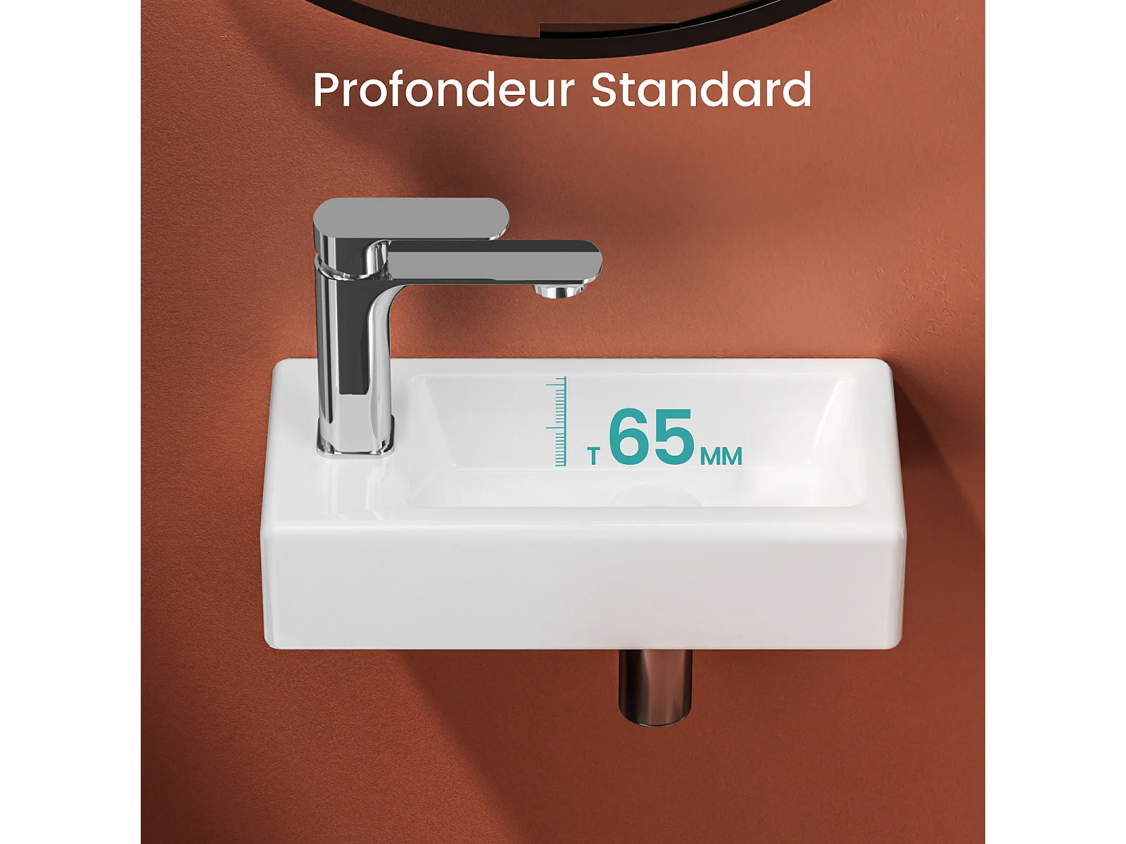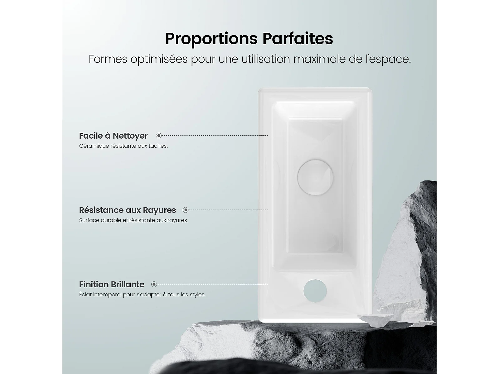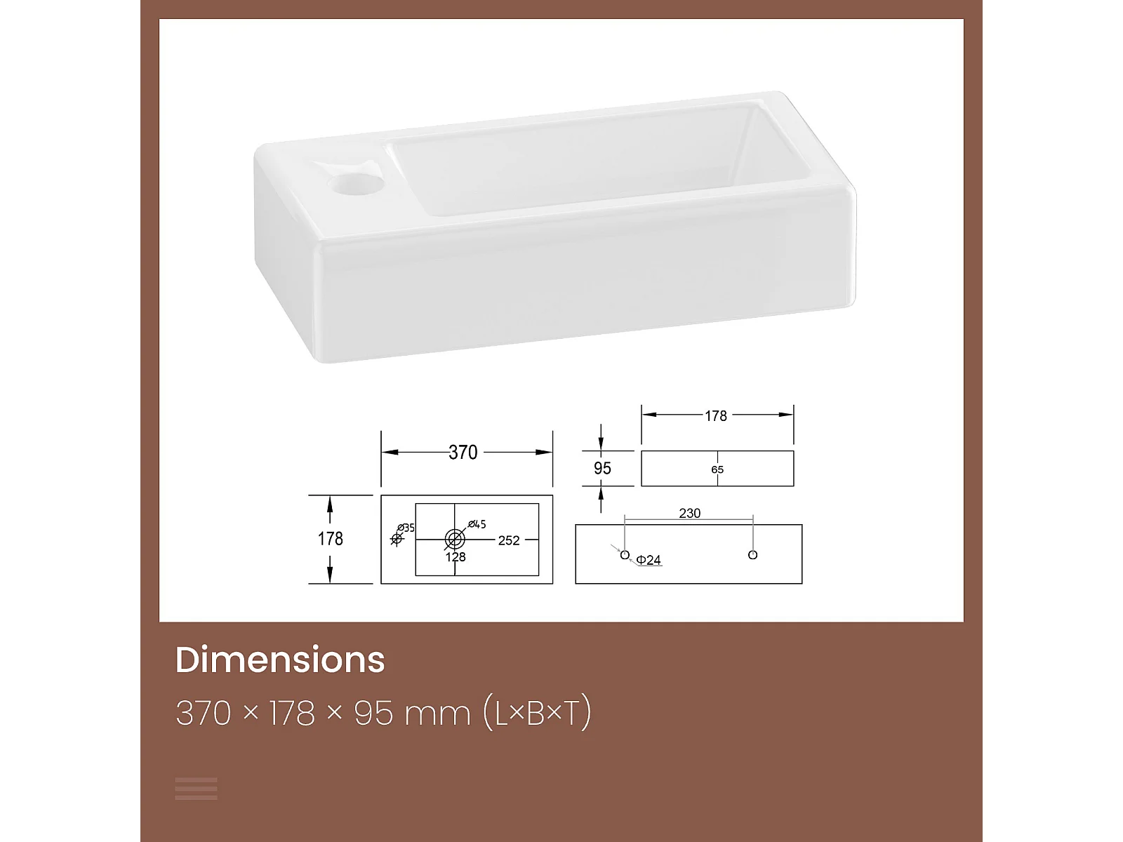 WASCHBECKEN Rechteckig, Hahnloch rechts, Weiß 36,5/18 /9 cm