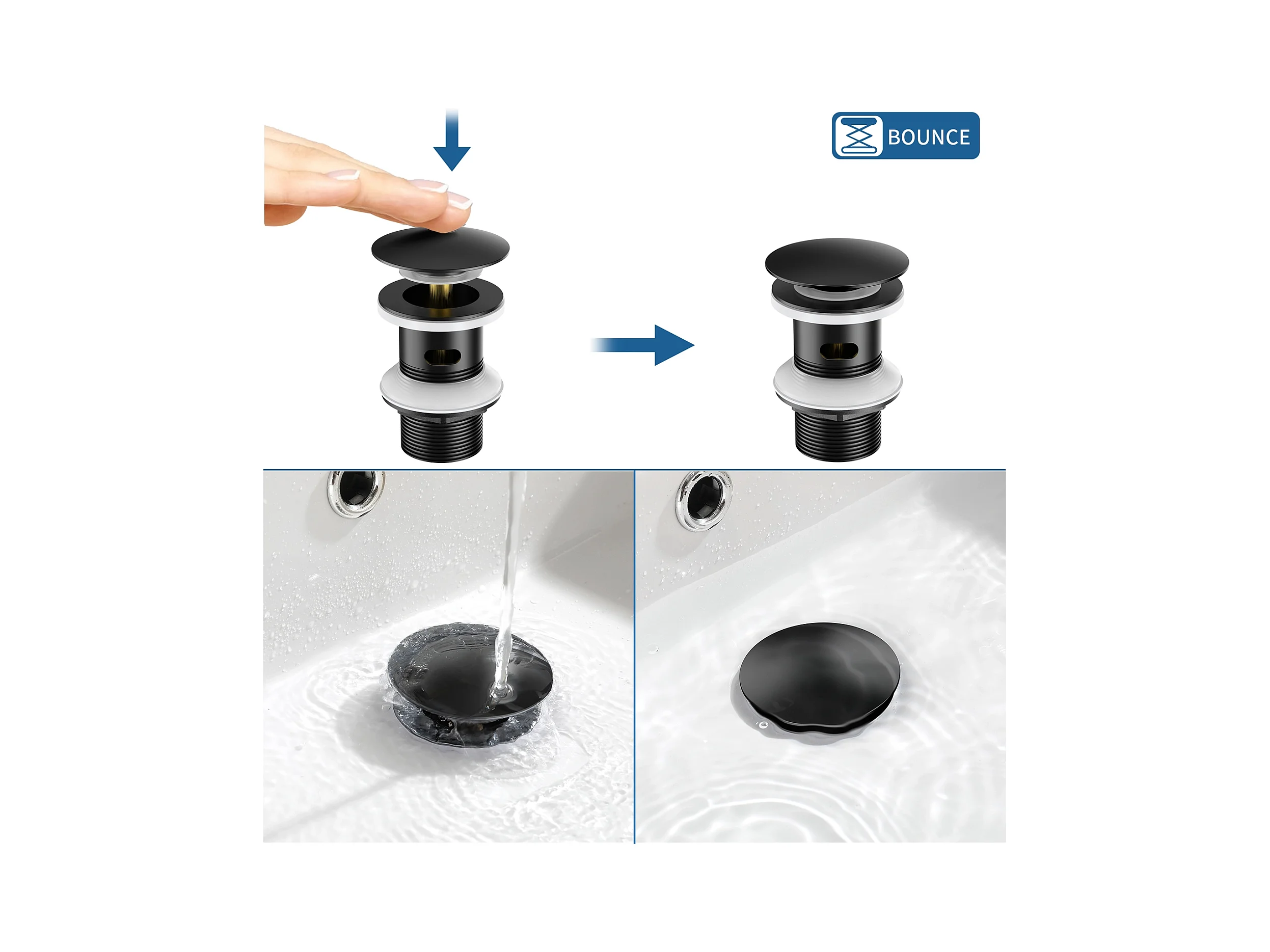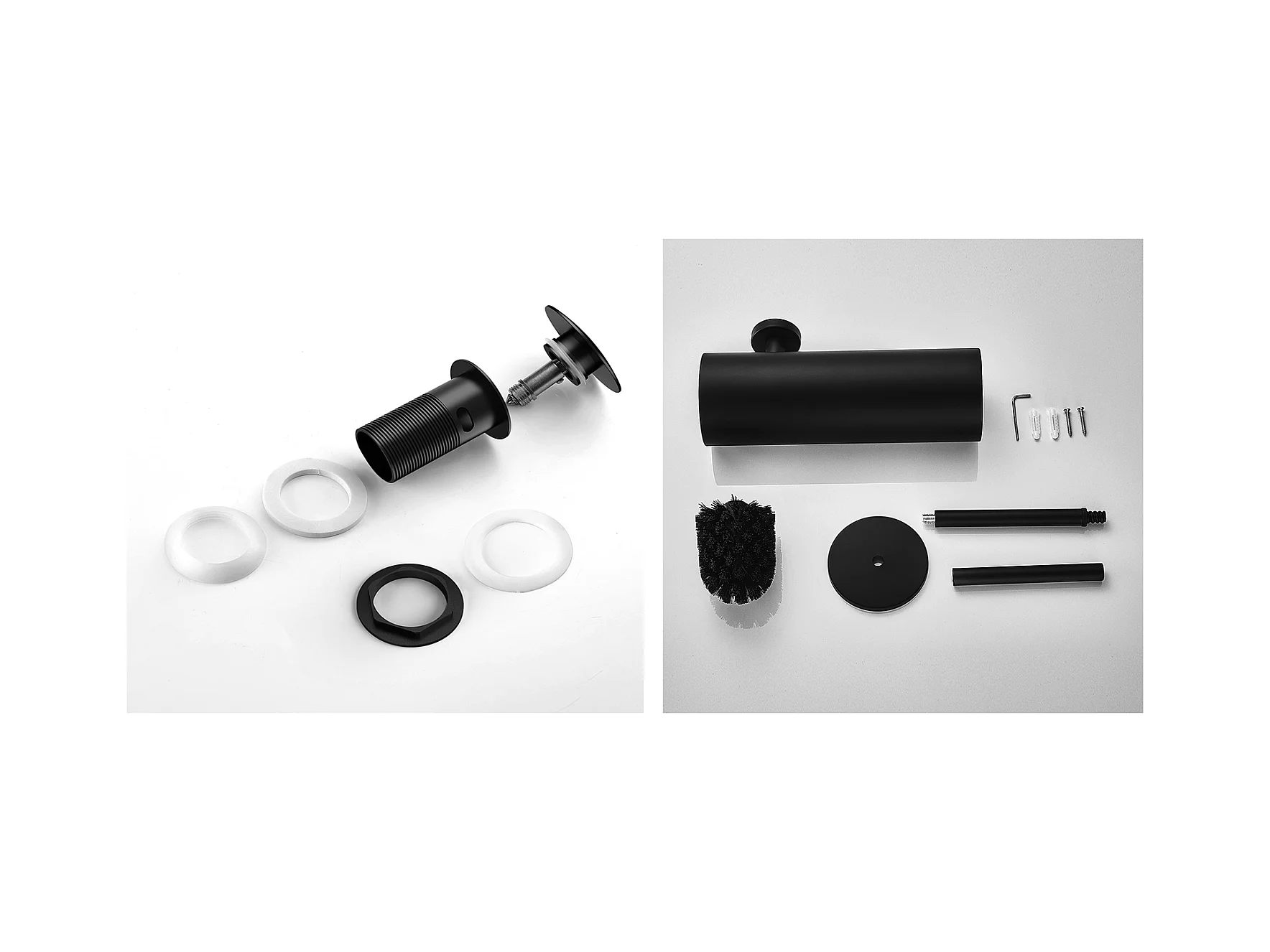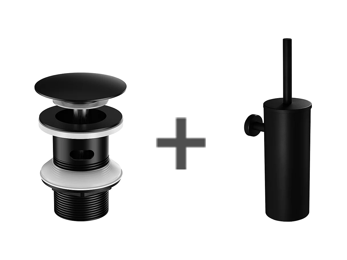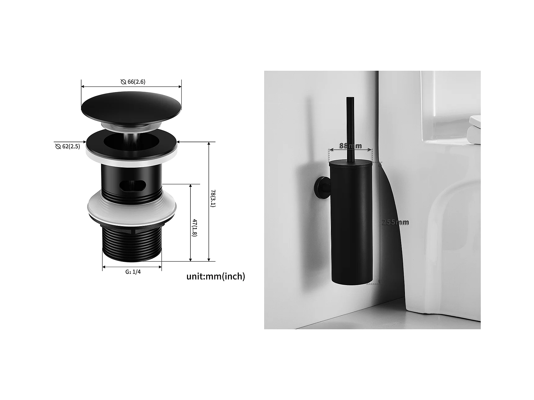 Waschbeckenablauf Pop-Up Ablaufgarnitur mit automatischem Überlauf Universal + WC-Bürste Wand-WC mit Bürstenhalter, Edelstahl, Schwarz