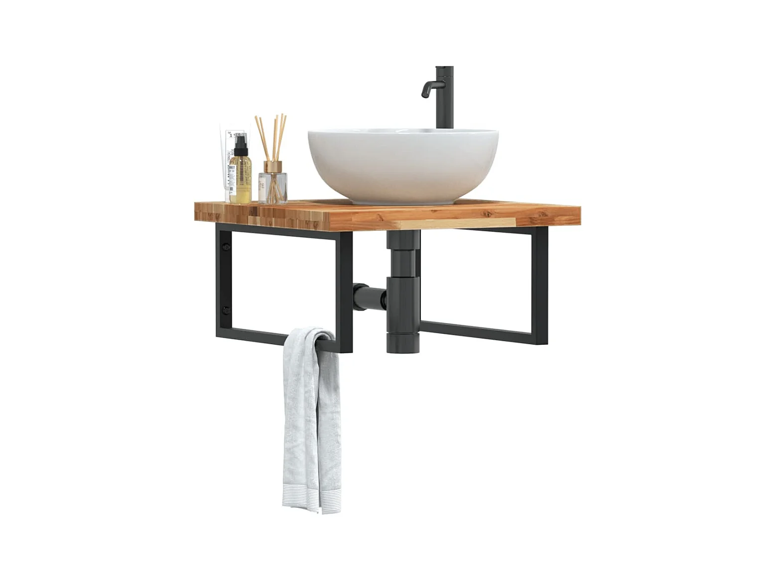 Waschbeckenregal Wandmontage Stahl und Akazienholz