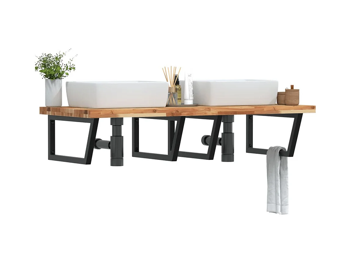 Waschbeckenregal Wandmontage Stahl und Akazienholz