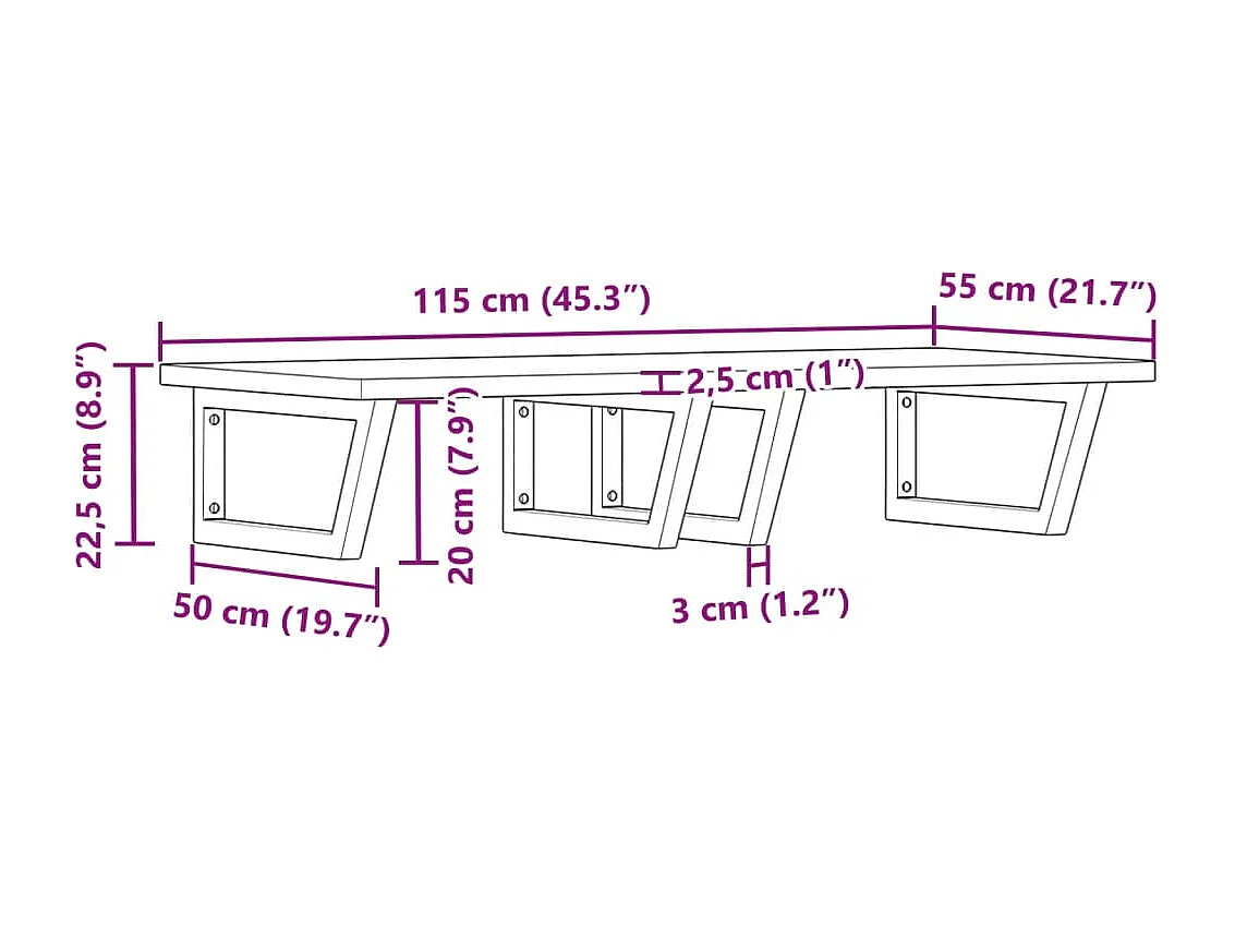 Waschbeckenregal Wandmontage Stahl und Massivholz Buche