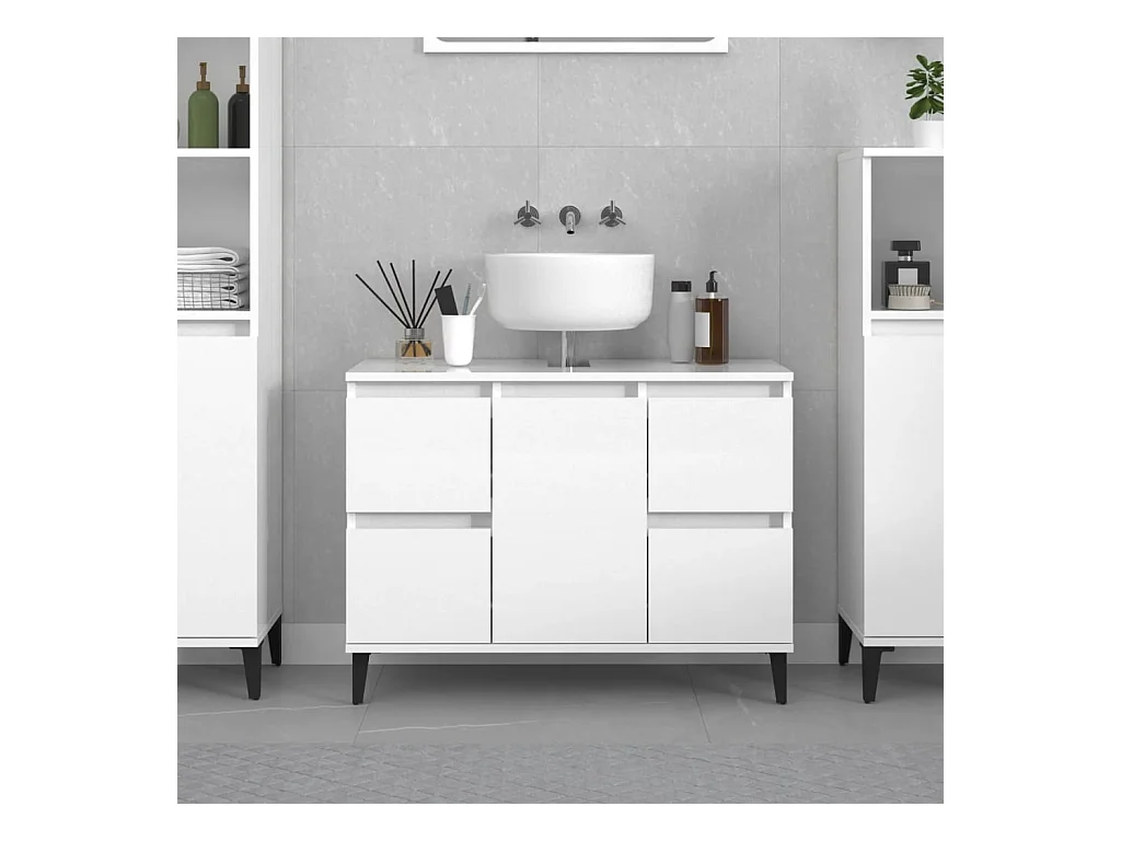 Waschbeckenunterschrank Hochglanz-Weiß 80x33x60cm Holzwerkstoff