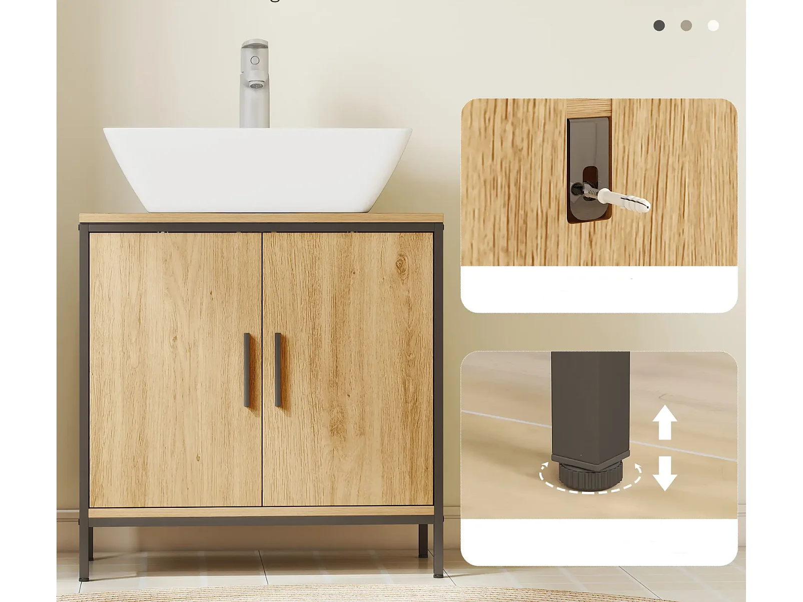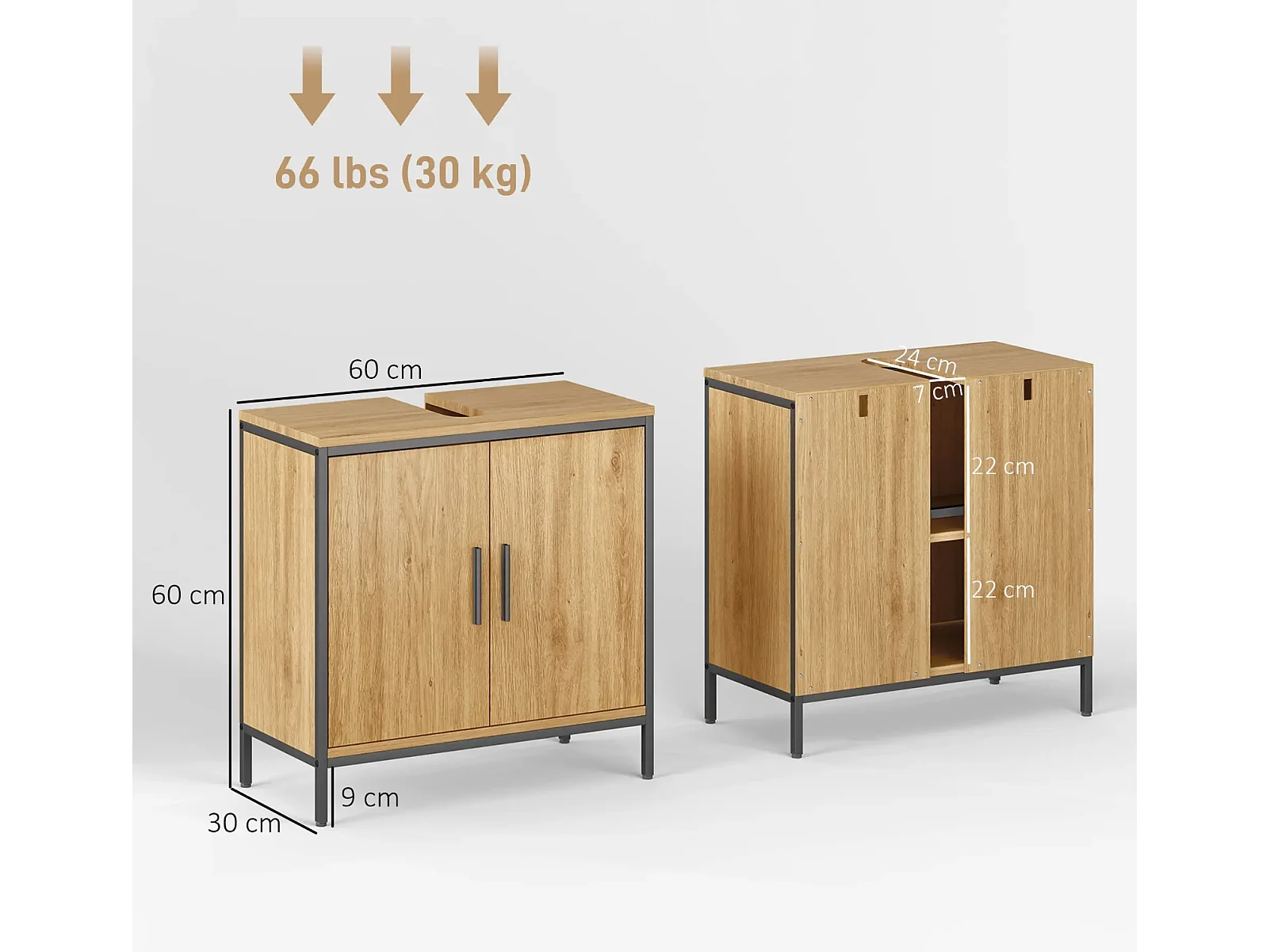 Waschbeckenunterschrank, Unterschrank mit 2 Türen, einstellbarem Regal,Badezimmerschrank für Waschbecken ohne Sockel 60x30x60 cm