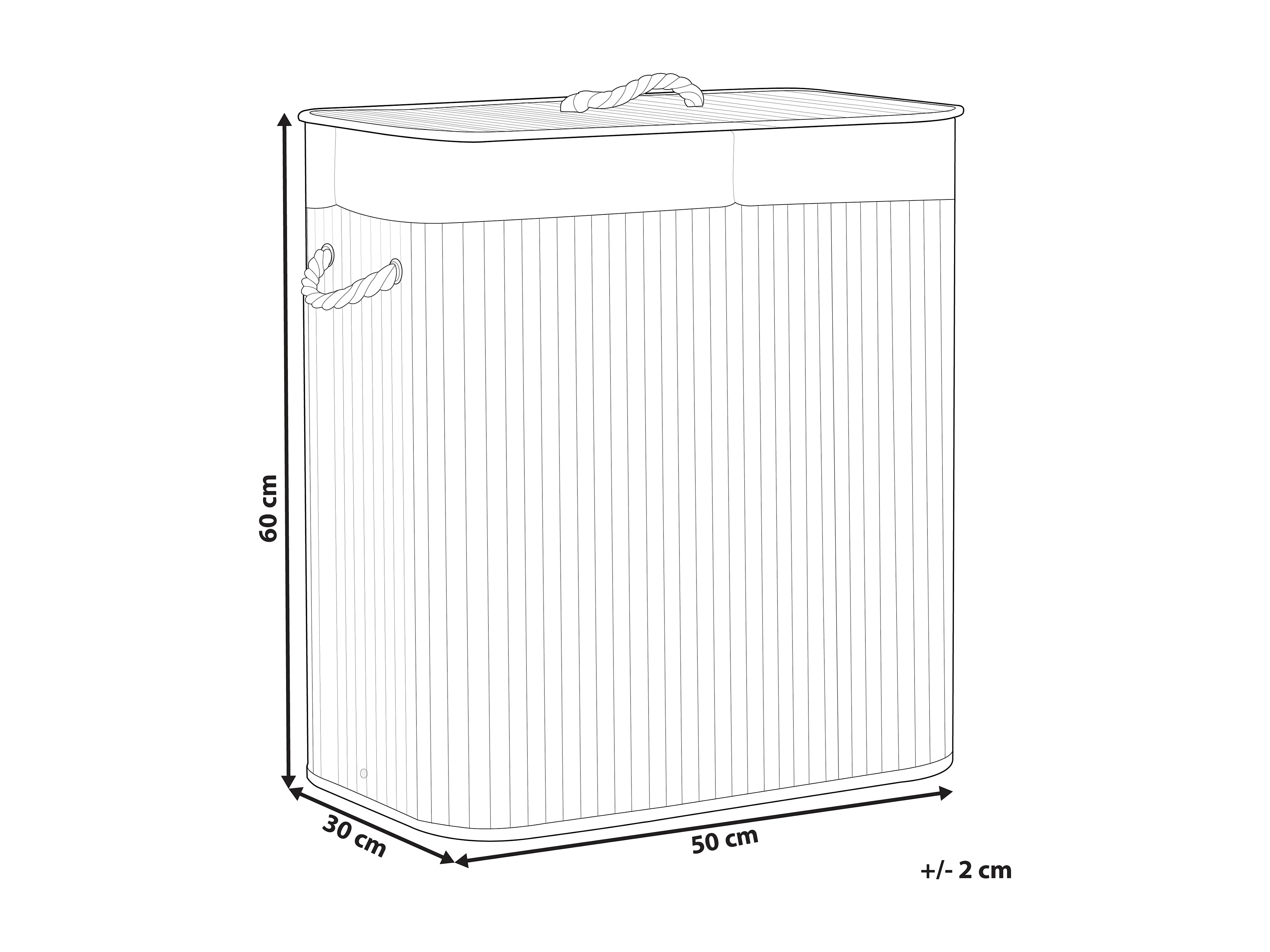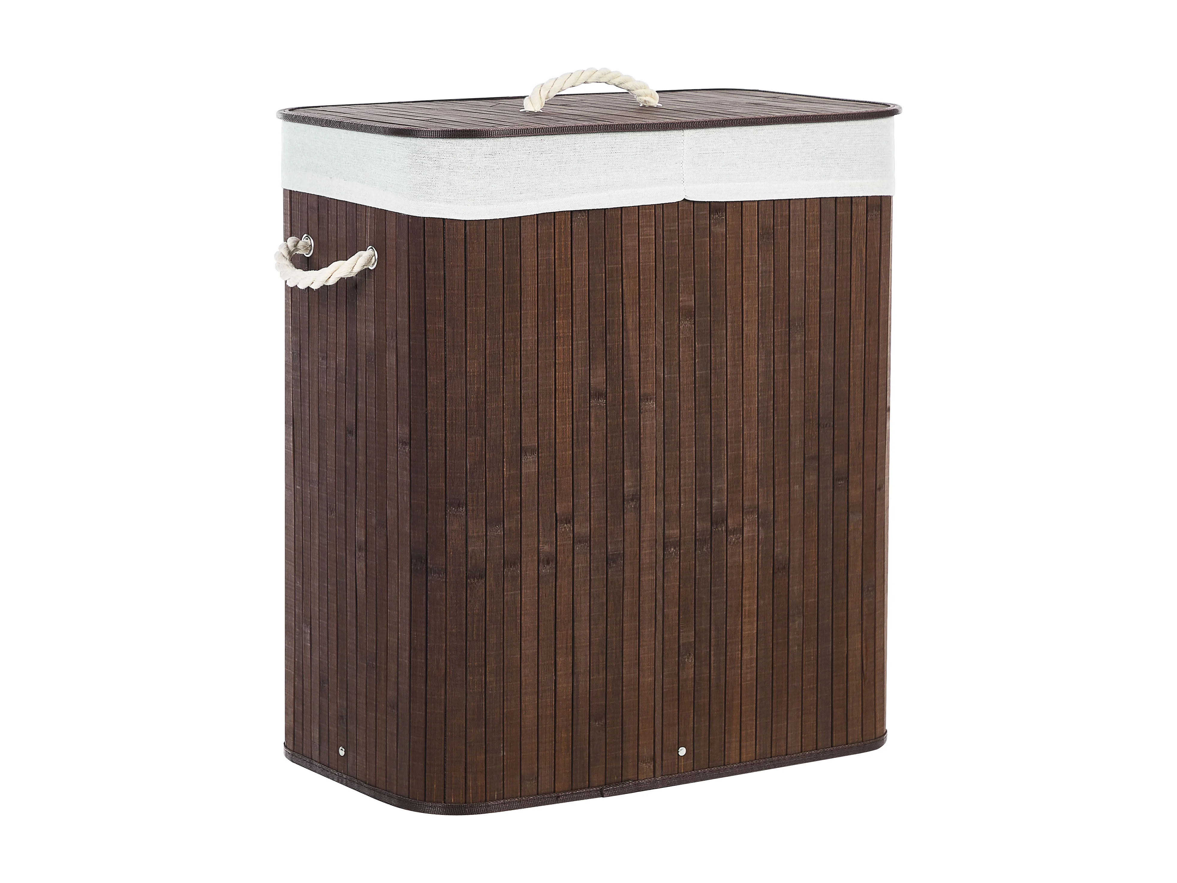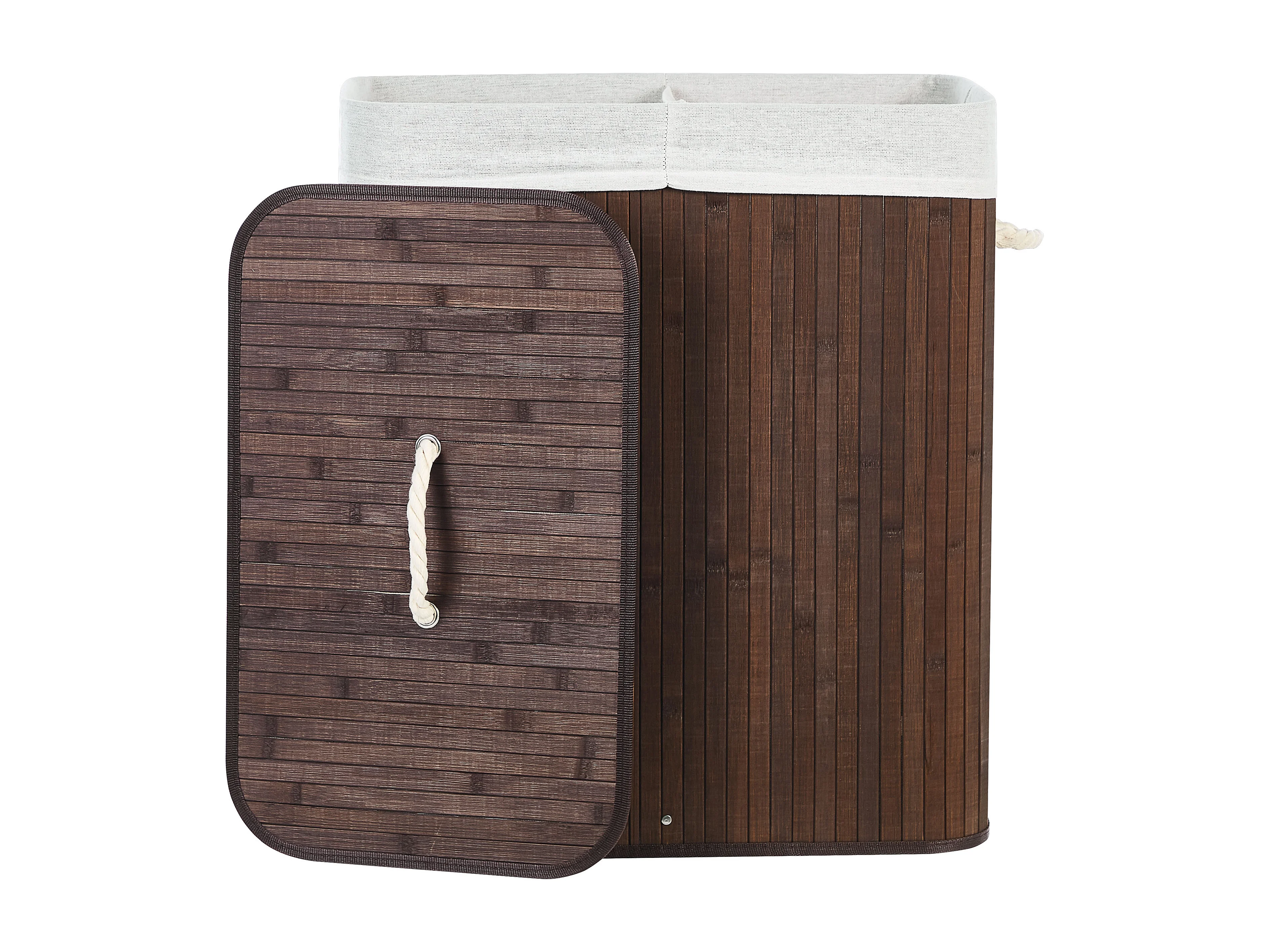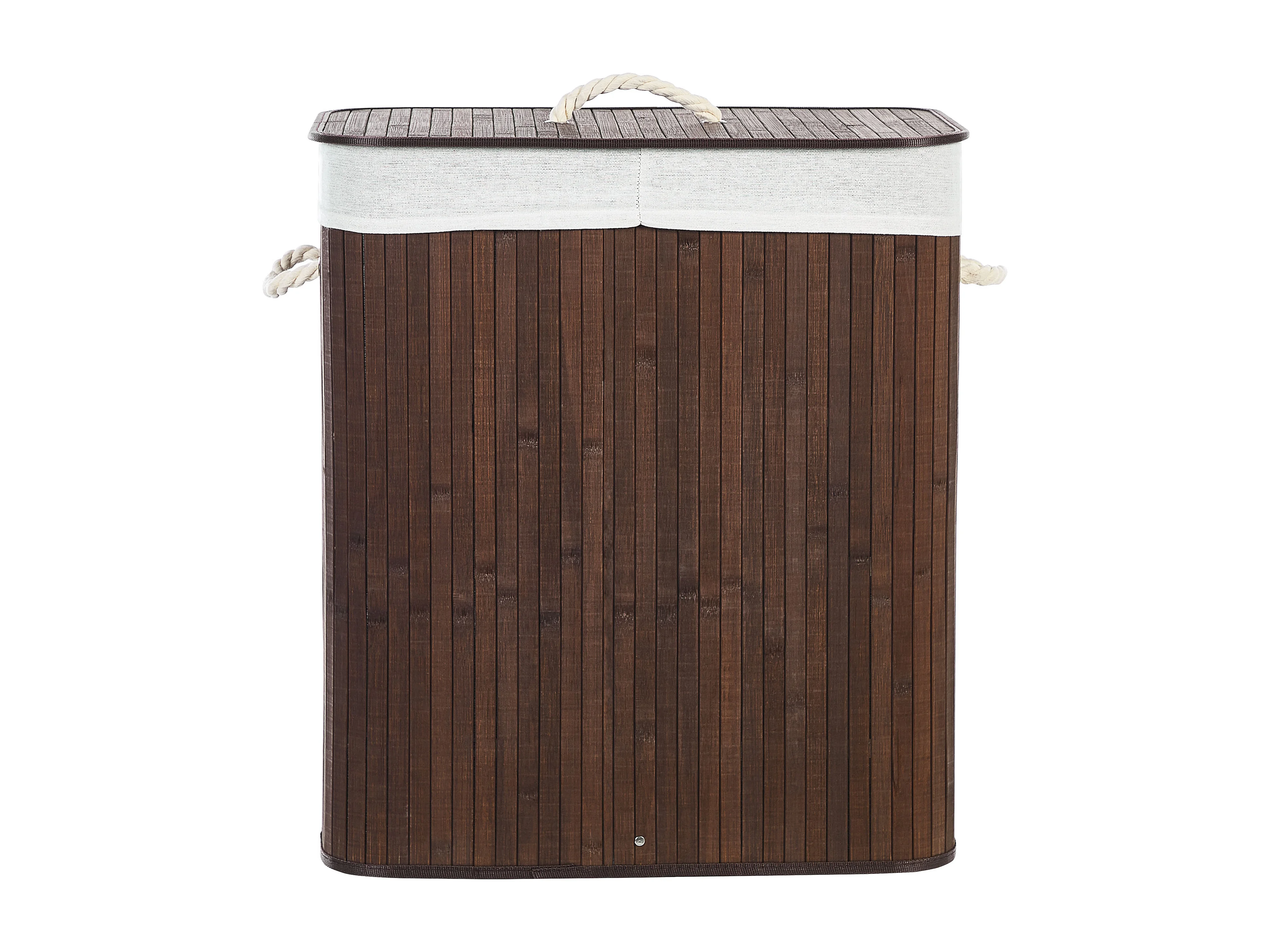 Wäschekorb Bambusholz dunkelbraun handgemacht mit Deckel 2 Kammern Sack Kandy