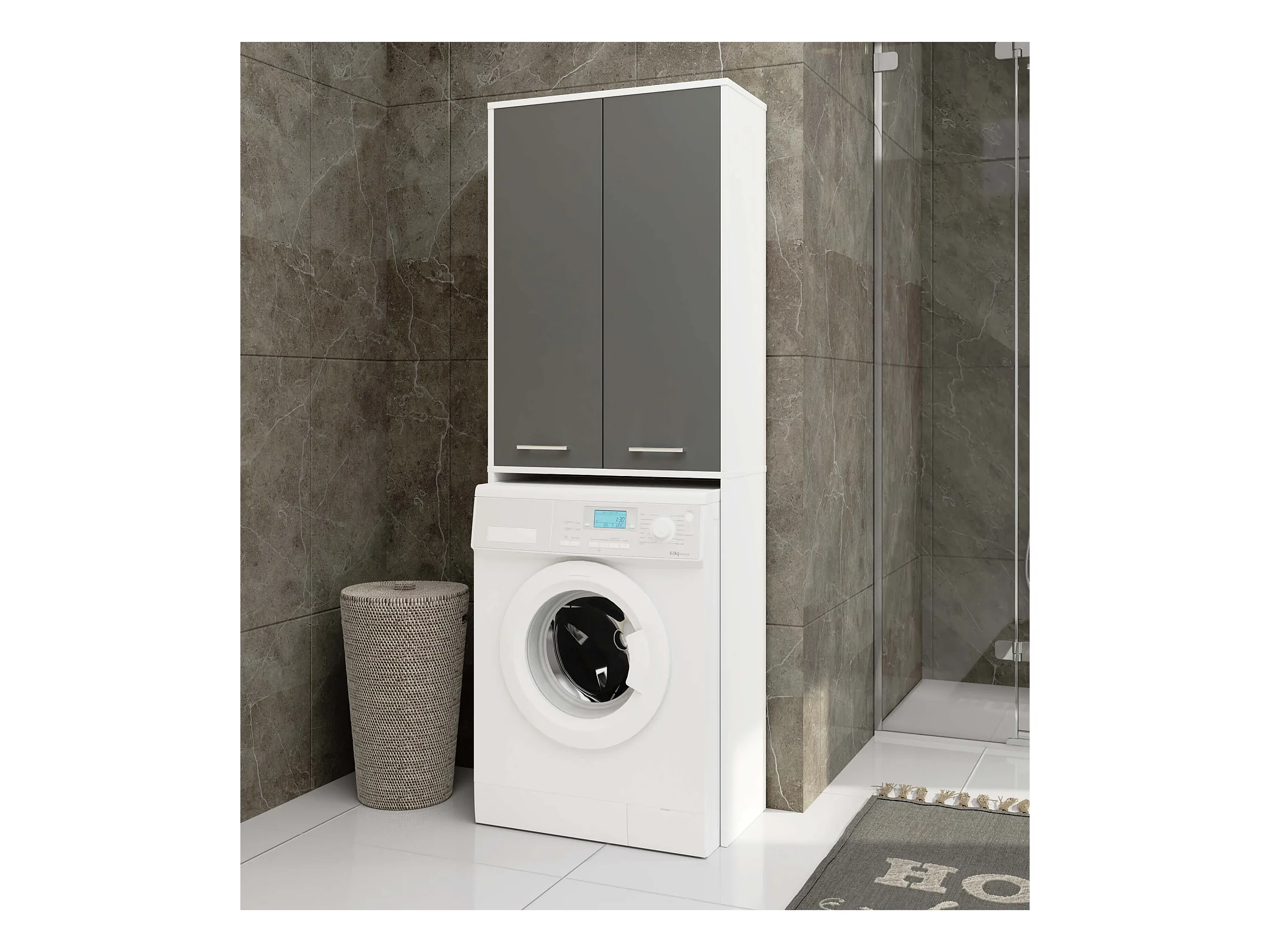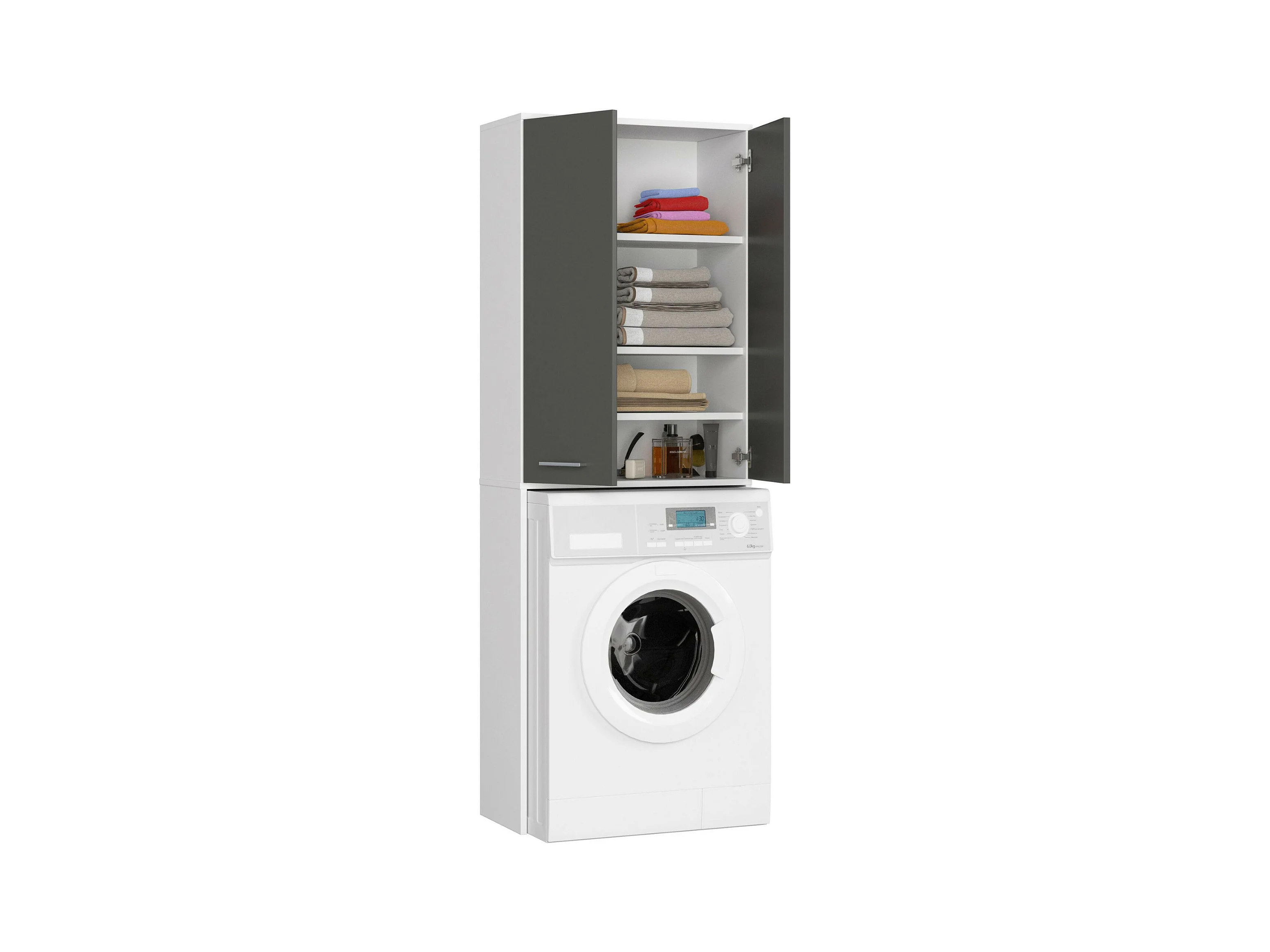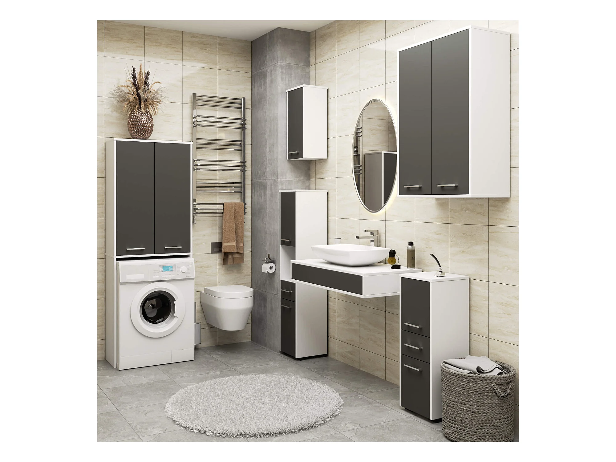 Waschmaschinenschrank AKORD FIN Badschrank Weiß 64 cm breit 2 Türen 4 Ebenen Front Graphitgrau B64 x H180 x T30 cm