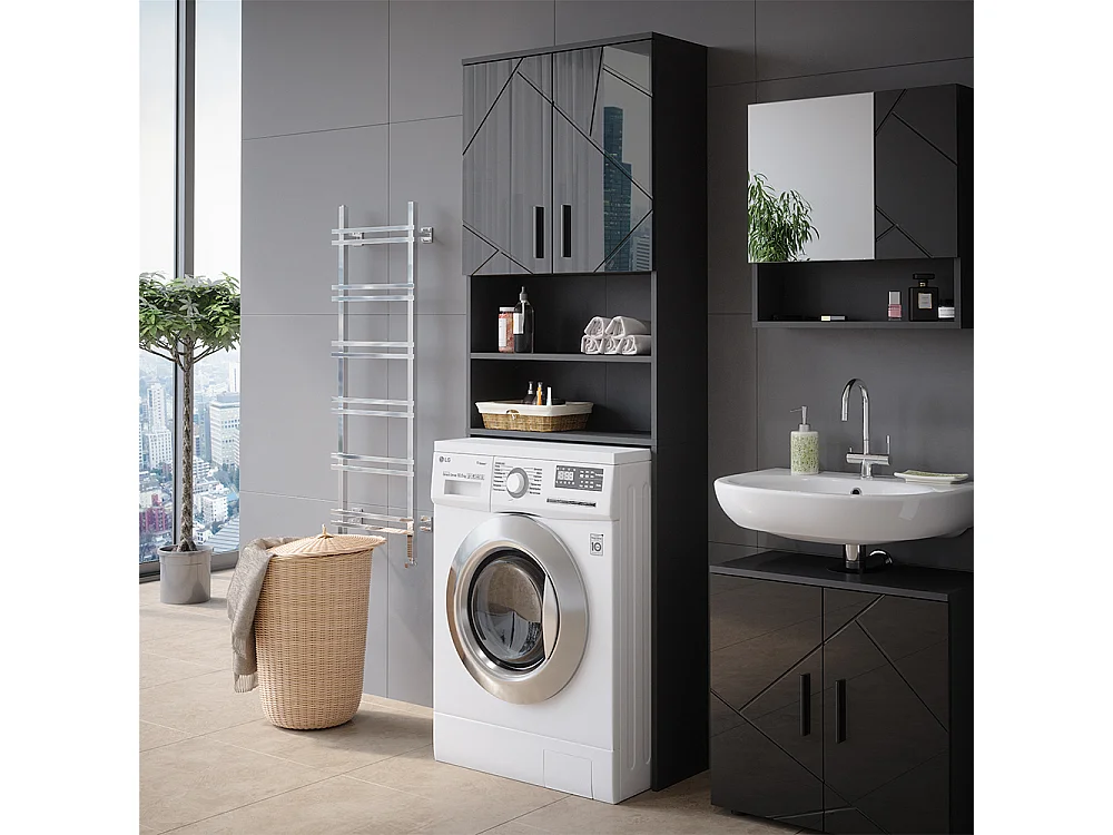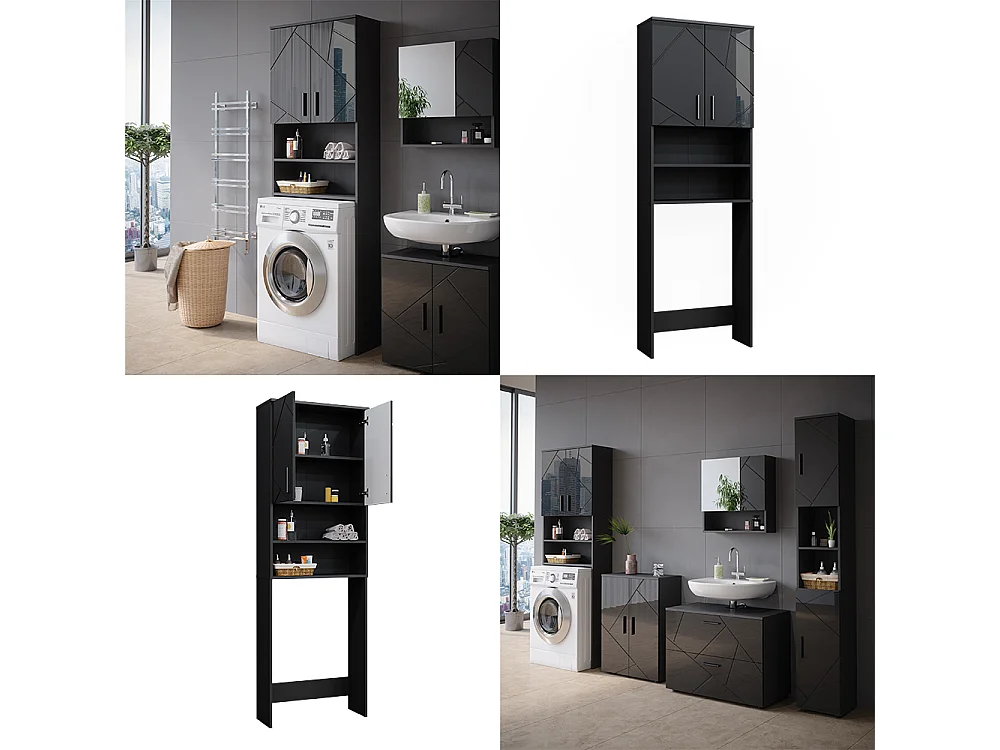 Waschmaschinenschrank anthrazit hochglanz 64x26x190.5 irma