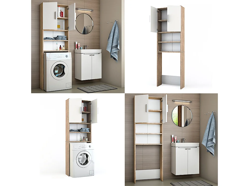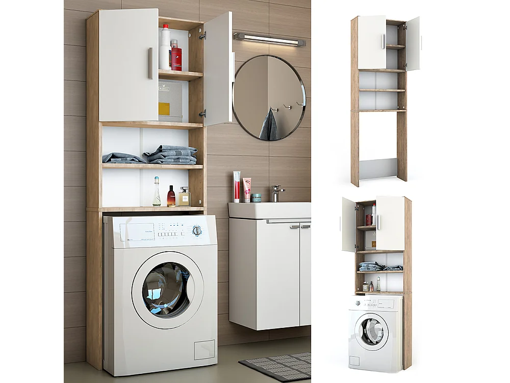 Waschmaschinenschrank weiß/sonoma 64x26x190