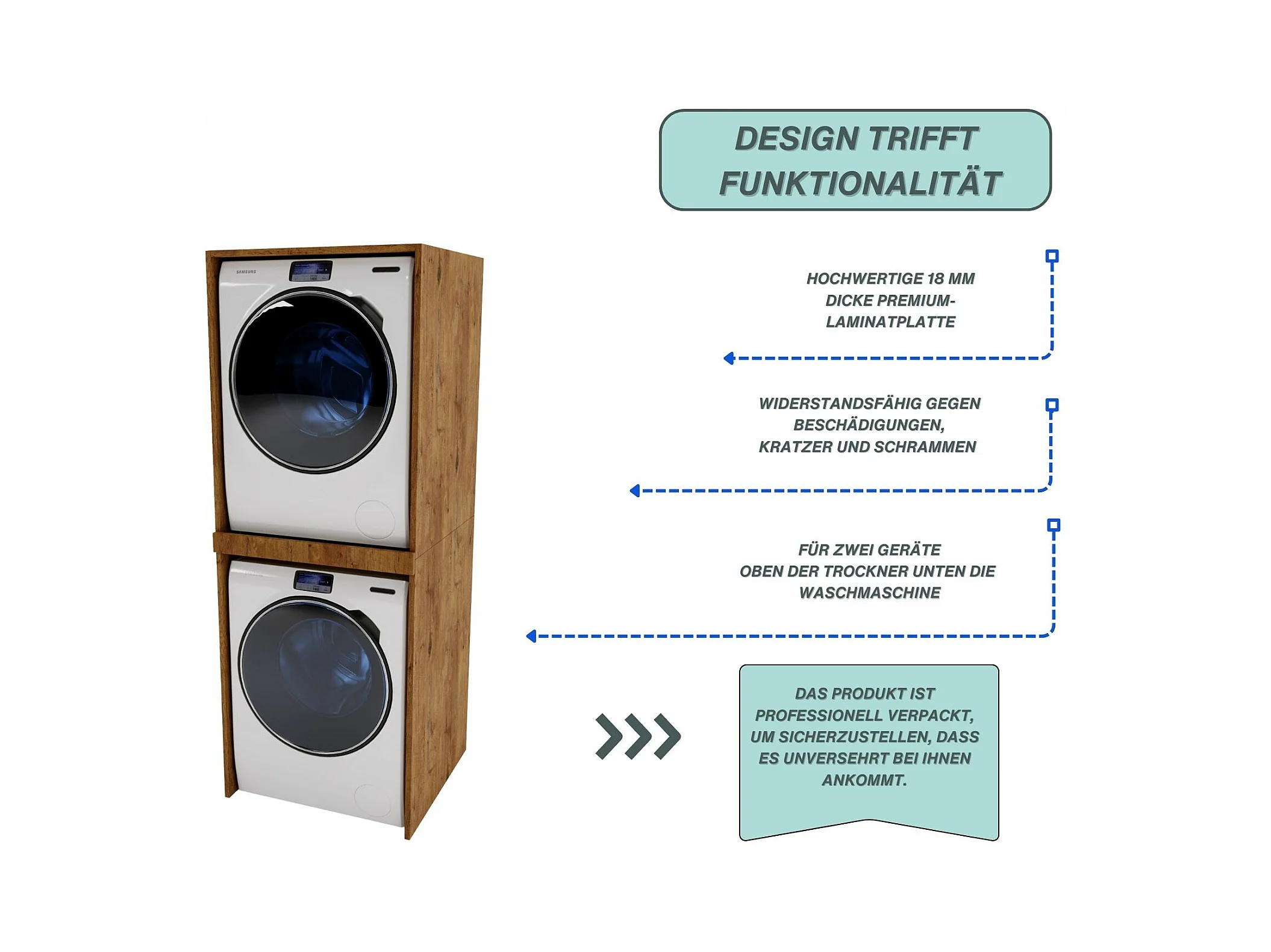 Waschmaschinenumbauschrank RAUMHIRSCH Waschmaschinenschrank für Waschmaschine & Wäschetrockner