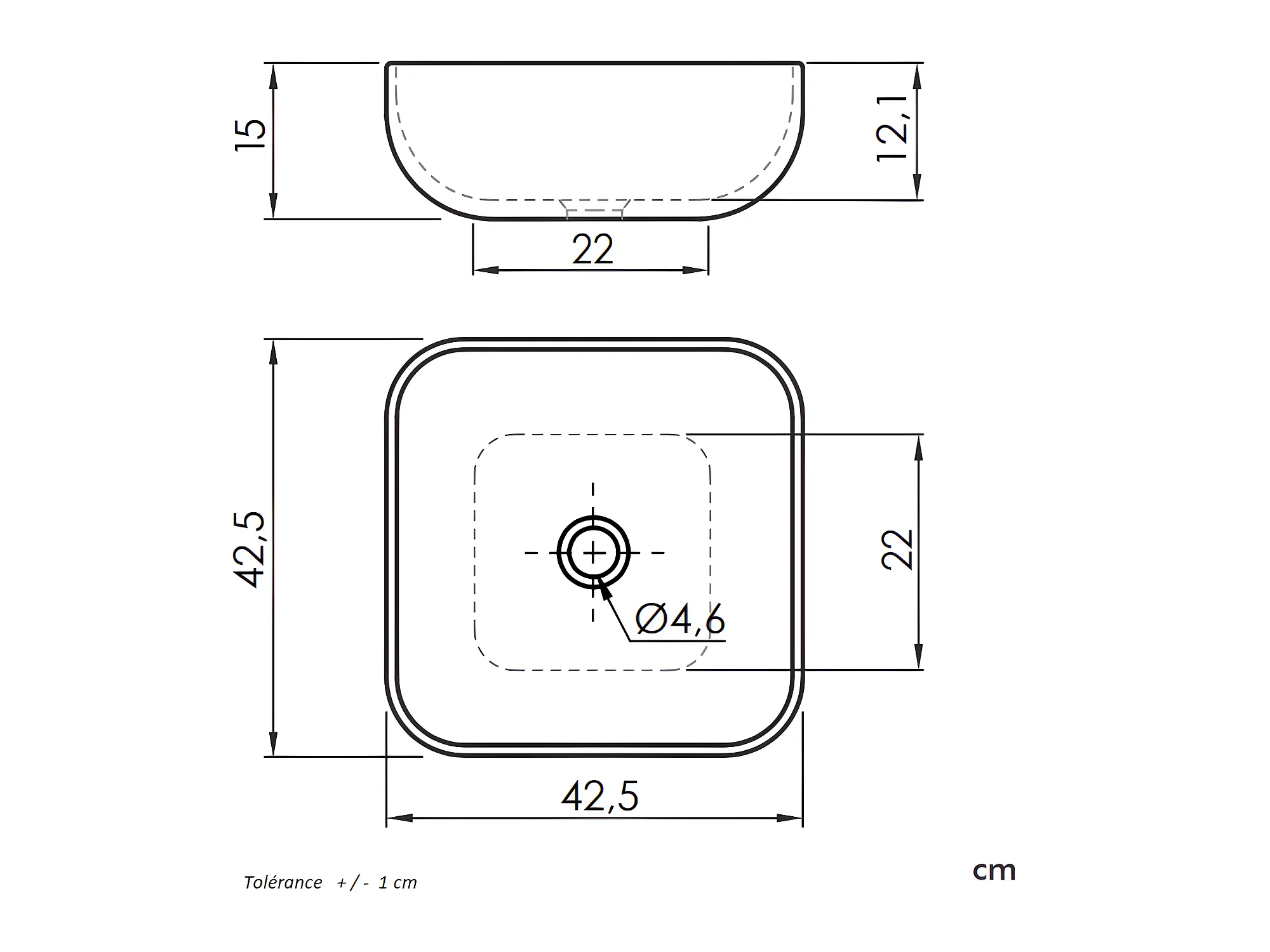 Waschtisch aus Keramik PALERMO für die Aufsatzmontage 42.5 x 42.5 cm