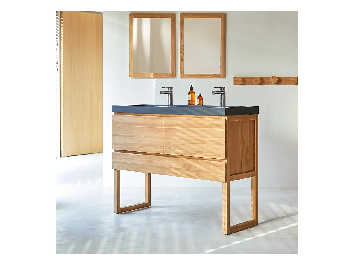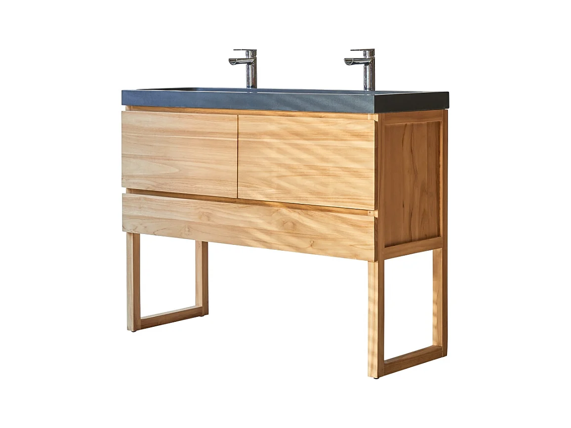Waschtisch aus Teakholz mit Waschbecken aus Lavastein 120 Edgar